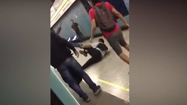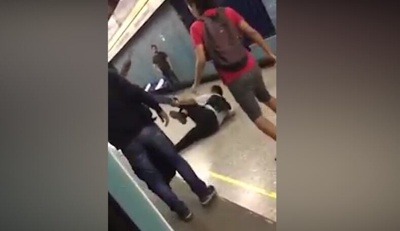 Tal como se puede apreciar en las imágenes, tanto el autor de los epítetos de grueso calibre como otro ciudadano aparentemente chileno terminaron golpeados en el andén de la estación.