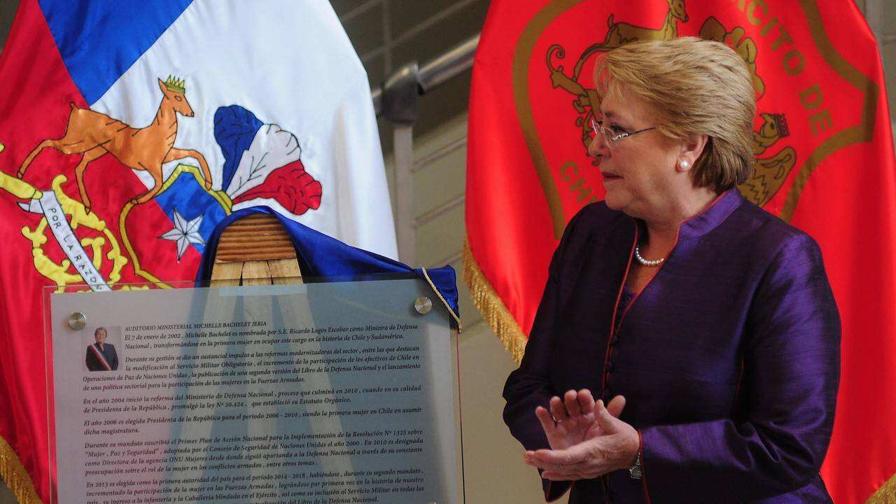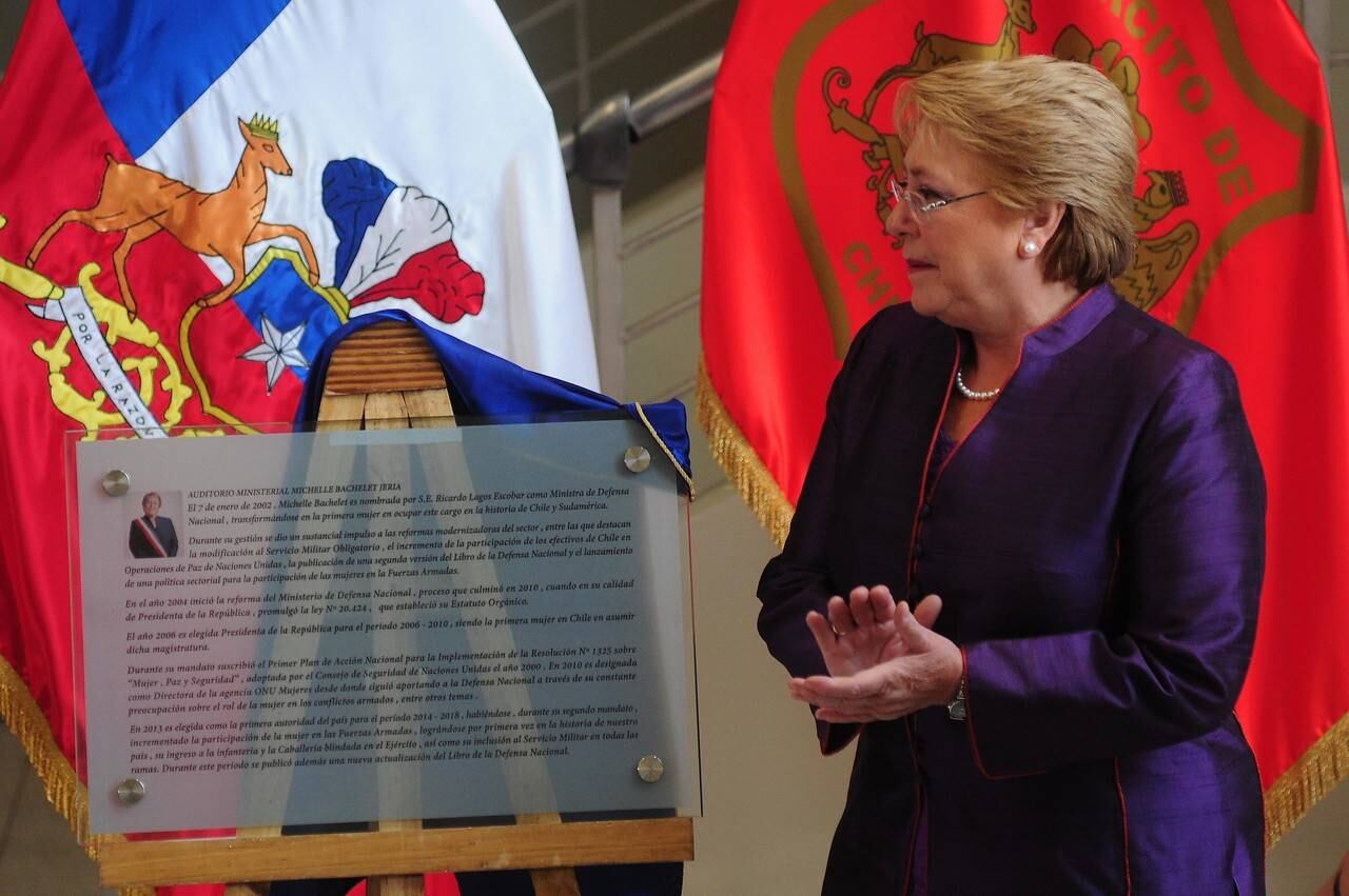 La Presidenta Michelle Bachelet fue homenajeada en el Ministerio de Defensa, donde el auditorio del edificio de calle Zenteno recibió el nombre de la mandataria, en reconocimiento como primera mujer en asumir el cargo de titular de esa cartera en Chile y Sudamérica.