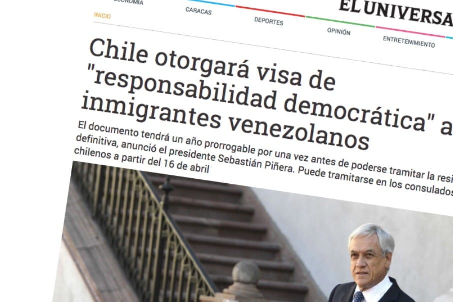 «Chile otorgará visa de «responsabilidad democrática» a inmigrantes venezolanos», tituló el diario El Universal de Venezuela. De ese mismo país, el diario El Nacional decidió destacar que «Chile otorgará visas especiales a venezolanos migrantes».