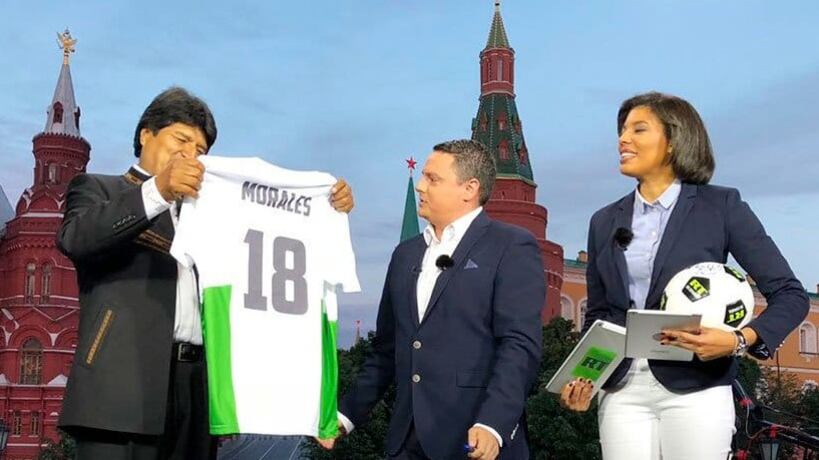 Tras el partido en el que los locales se impusieron por 5 a 0 ante la selección de Arabia Saudita, Morales partió a un canal de televisión de la cadena rusa RT, donde comentó cuestiones futbolísticas junto a su amigo personal, Diego Armando Maradona.