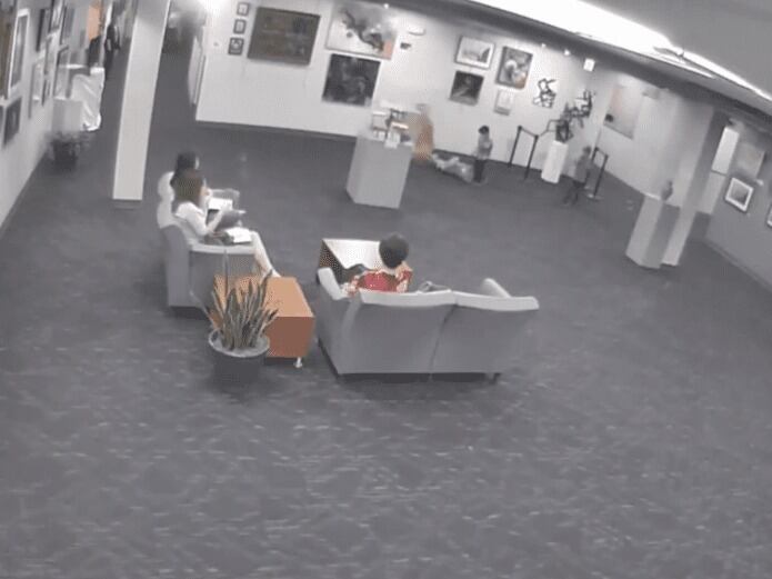 Sarah Goodman dijo al Kansas City Star que el incidente ocurrió el mes pasado en el Centro Comunitario Tomahawk Ridge en el Parque Overland cuando su familia asistió a una fiesta de bodas. Goodman dijo que no vio la caída de la obra de arte pero señaló que su hijo sufrió lesiones menores.
