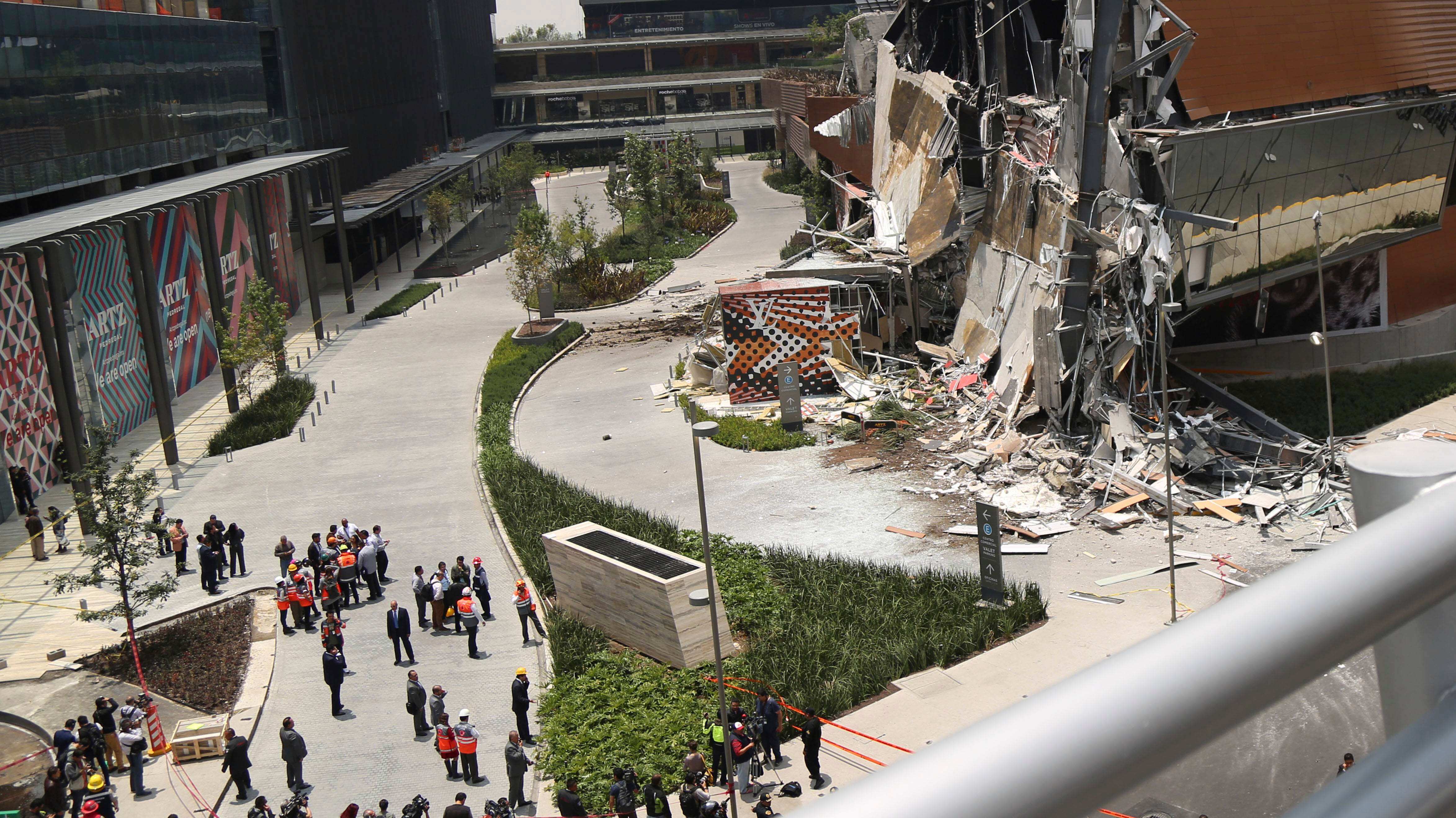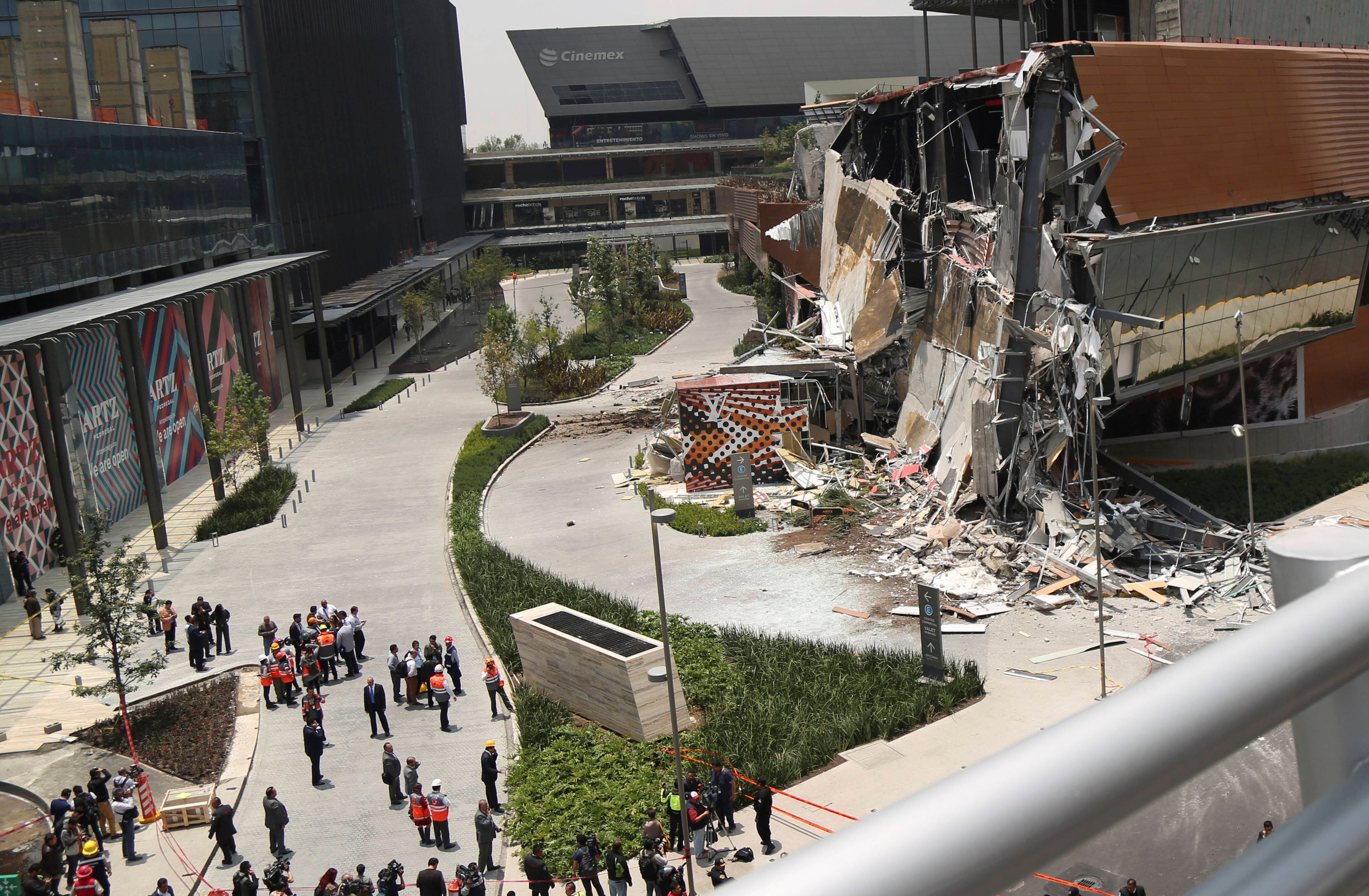 Un centro comercial relativamente nuevo, situado en una zona acomodada del sur de la Ciudad de México, se derrumbó parcialmente el jueves sin ocasionar víctimas y ante la mirada de muchas personas que habían sido evacuadas previamente.