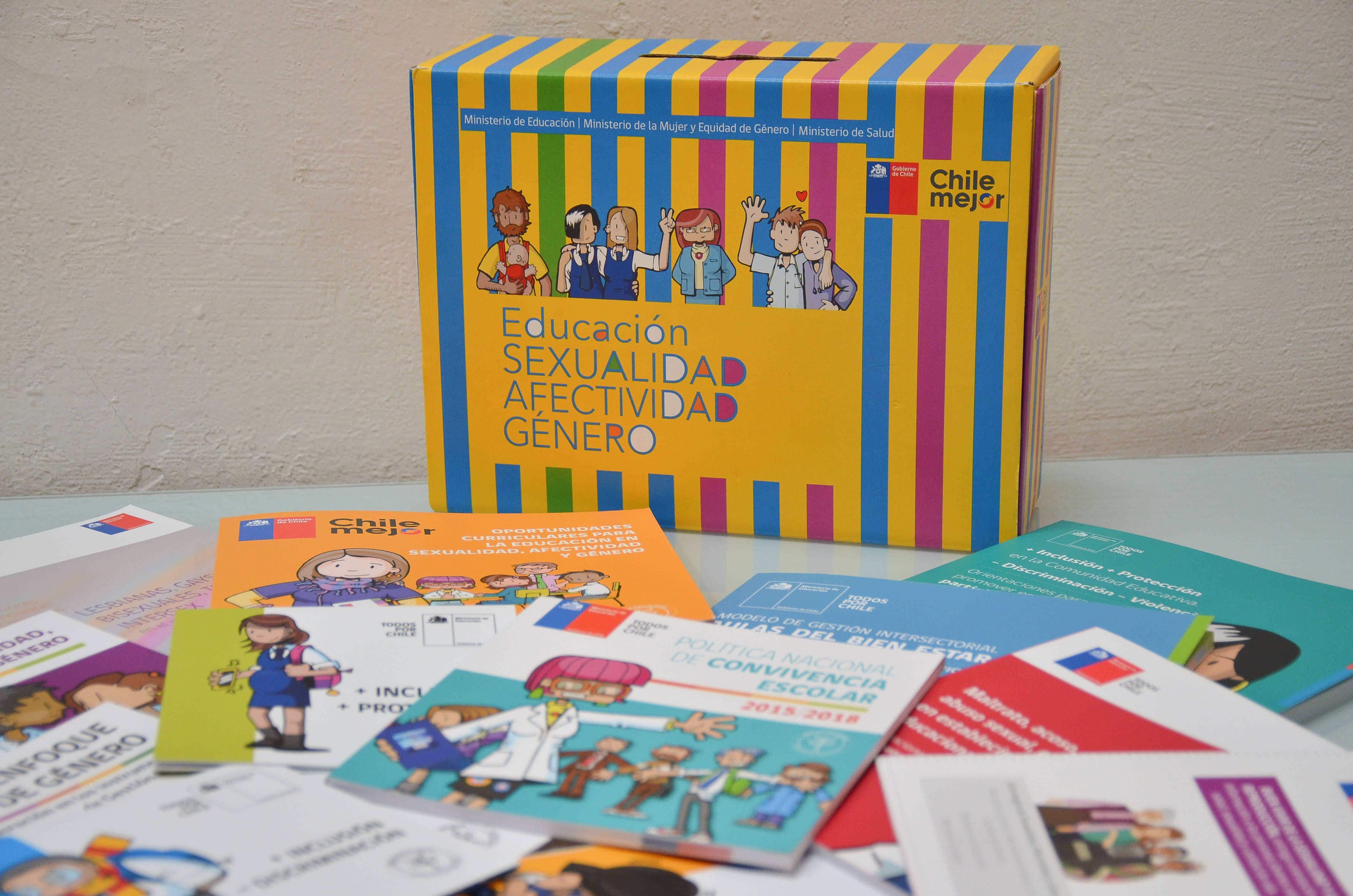 La caja del Movilh y el Mineduc entregada en colegios públicos, incluye tres textos sobre orientación para promover la participación de las comunidades, la sana convivencia escolar y la inclusión de personas LGBTI. En la colorida caja, que en su exterior tiene las palabras sexualidad, afectividad y género, incluye además dos polípticos con información sobre salud sexual y reproductiva y otro sobre prevención de la violencia.