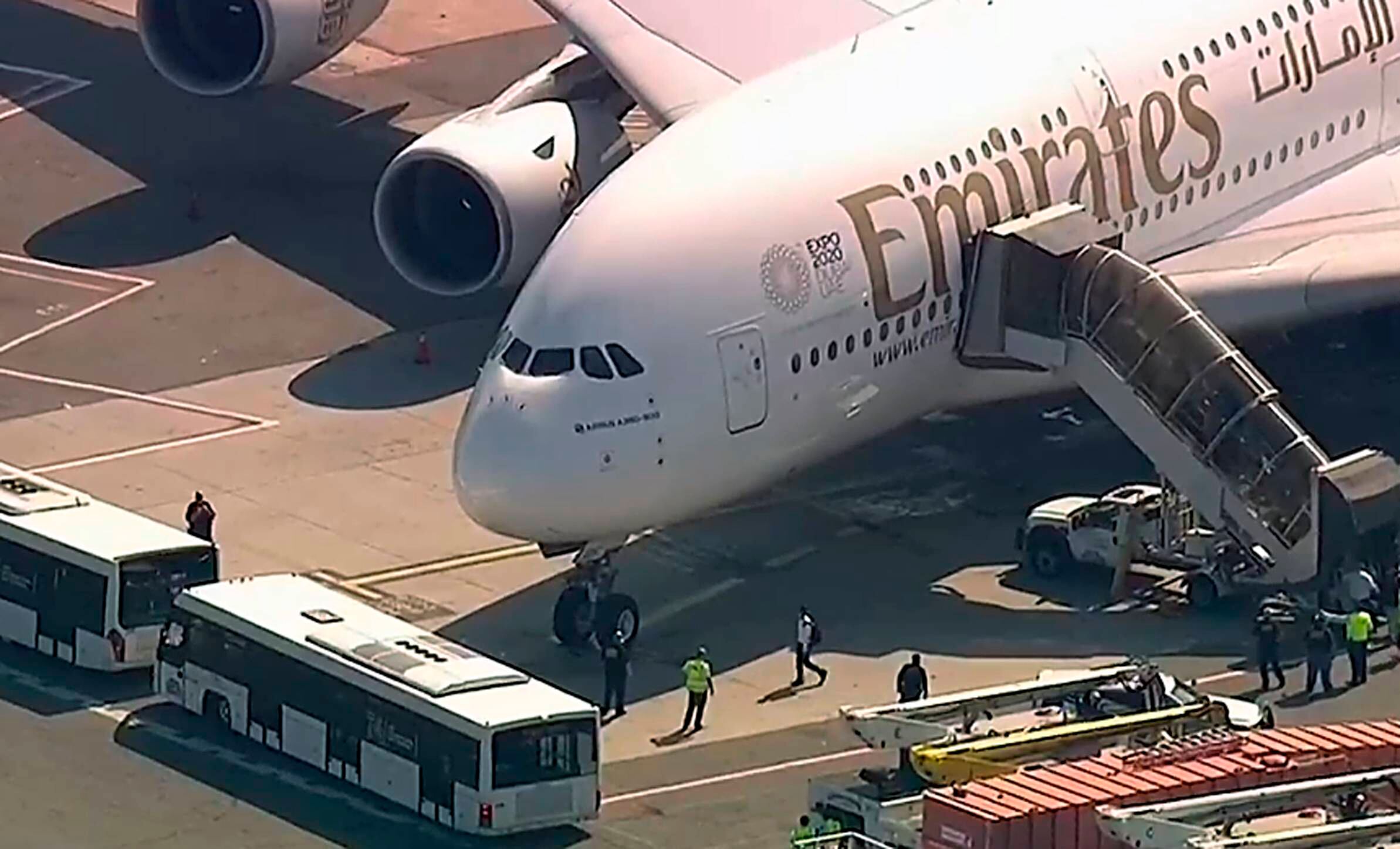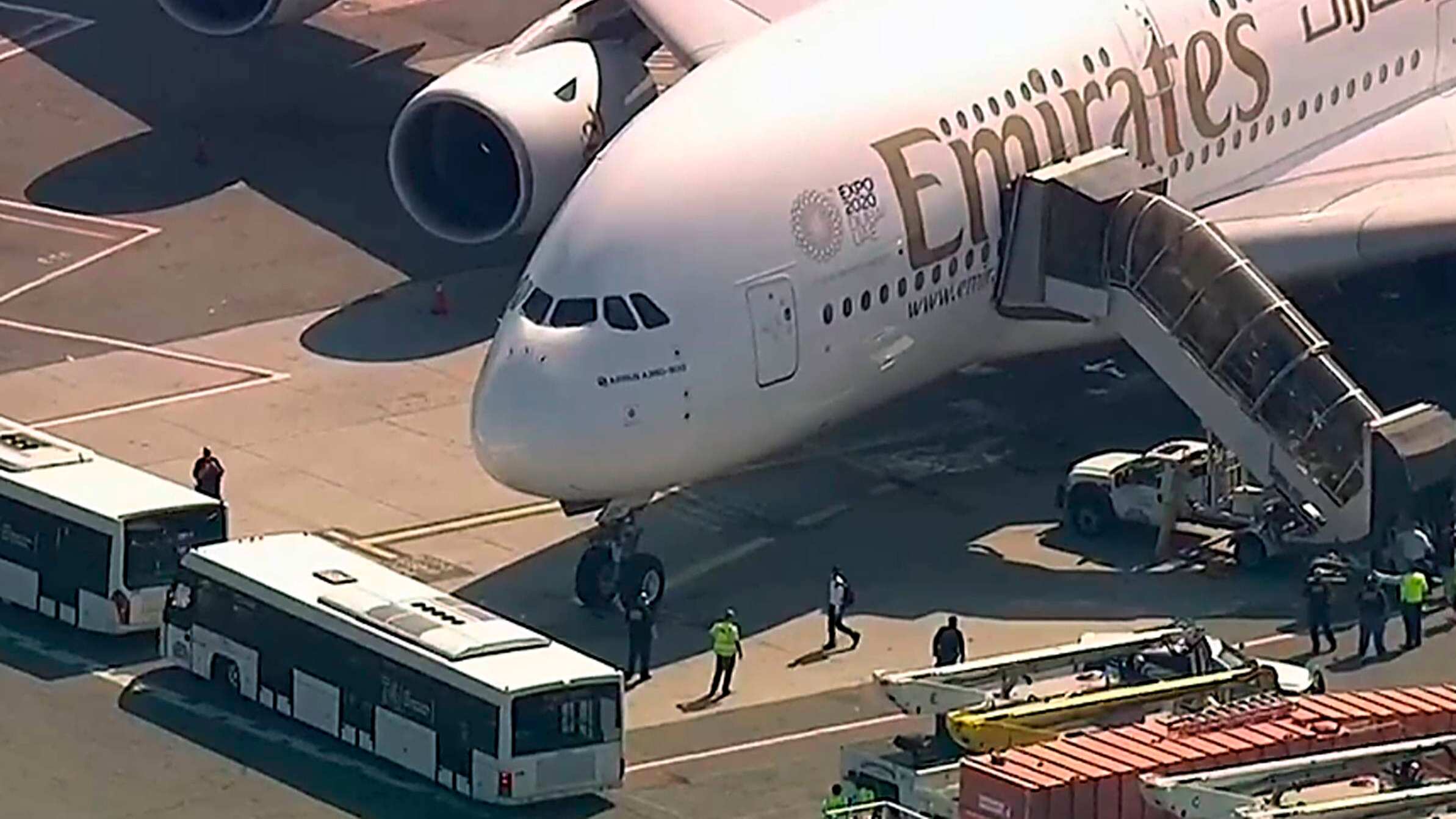 Al menos una docena de los alrededor de 500 pasajeros, del vuelo de la aerolínea Emirates, fueron trasladados a un hospital cercano tras presentar síntomas como tos y fiebre alta.