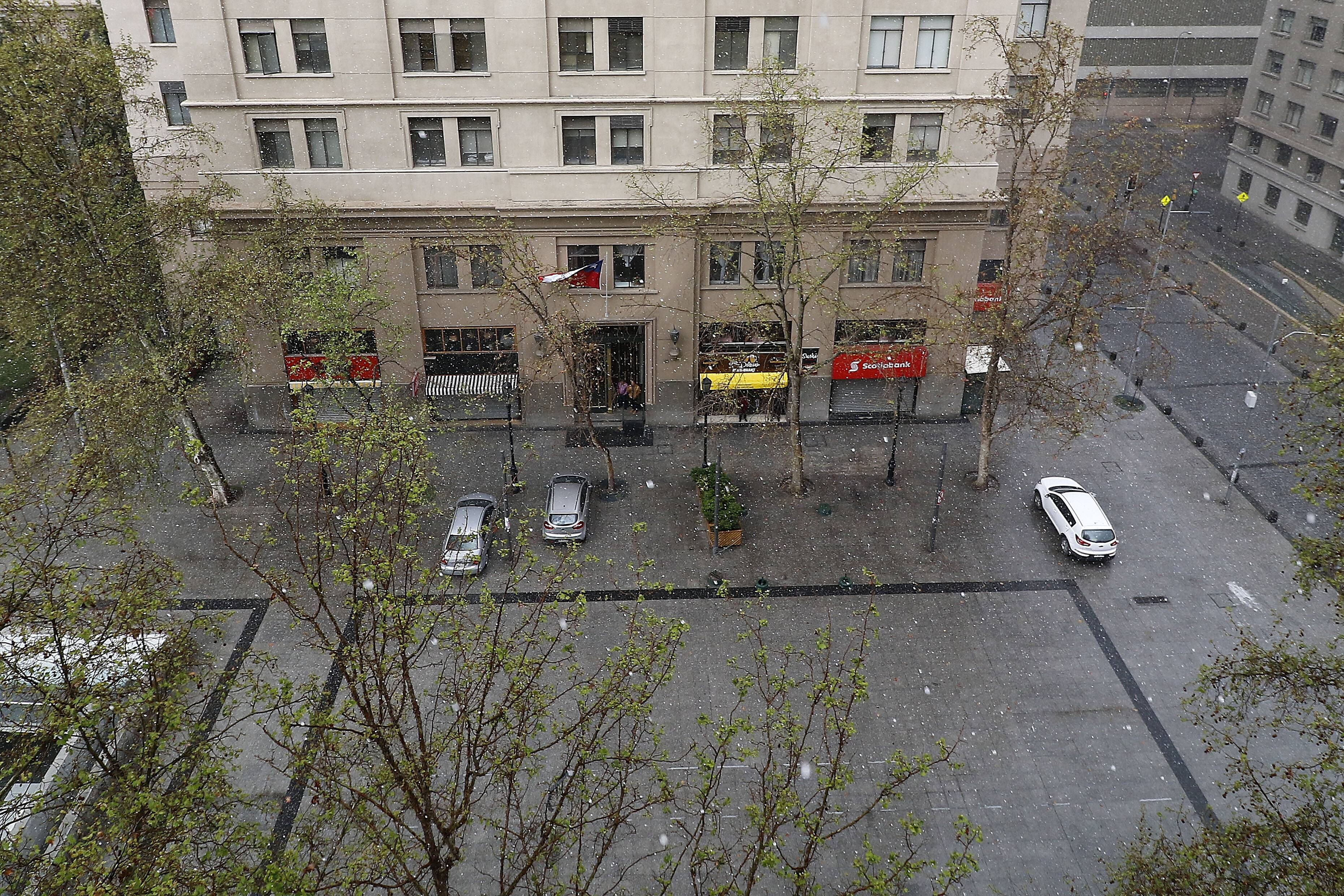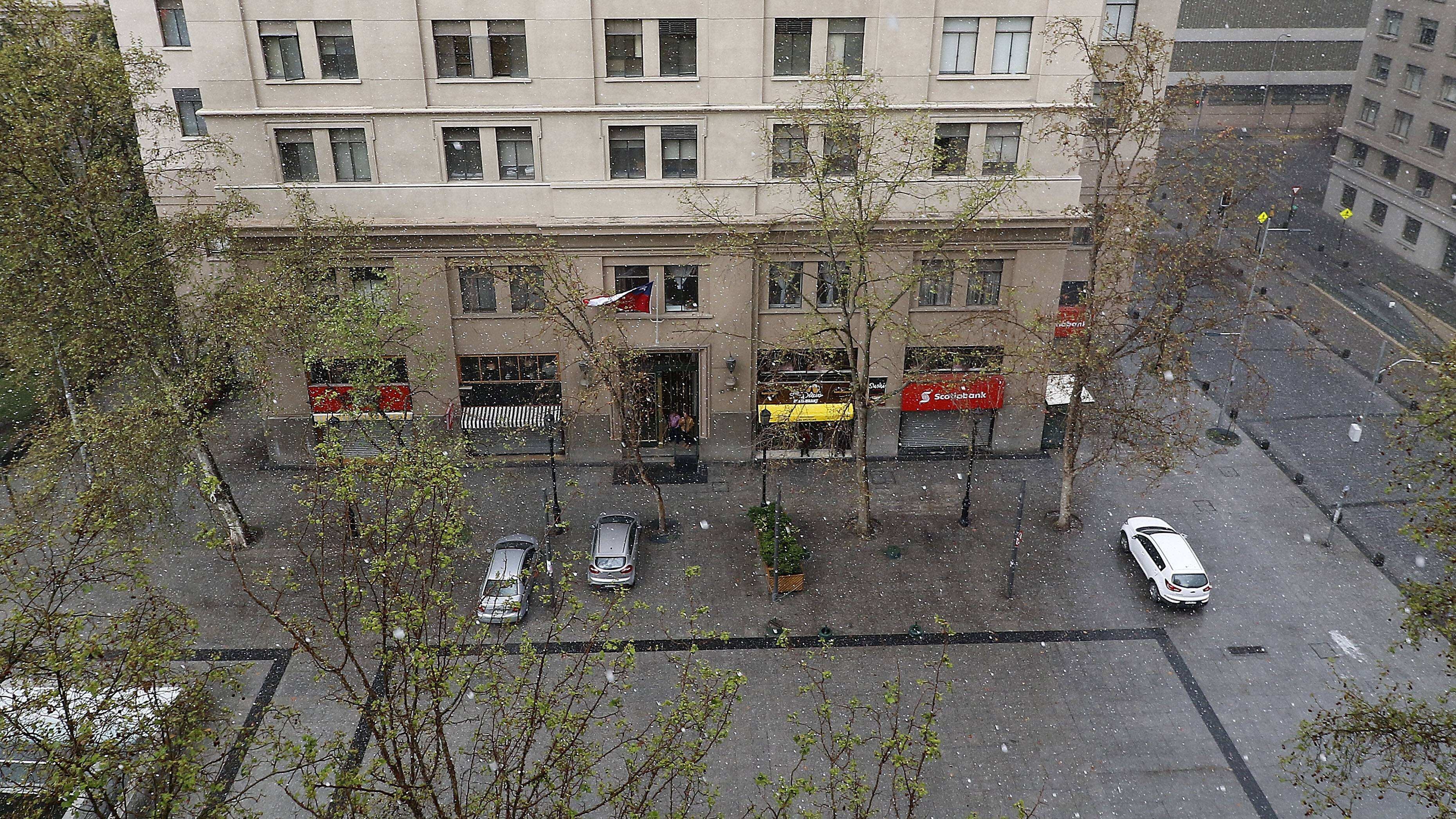 El mal tiempo continúa en horas de esta tarde. En el centro de Santiago a eso de las 15:30 una sorpresiva granizada agregó otro particular capitulo a la celebración dieciochera.