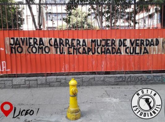 Sin embargo, lejos de terminar con la polémica en los emblemáticos, este fin de semana se sumó un nuevo capítulo de violencia en los colegios. Amanda Opazo, vocera de la Cones, denunció la aparición de una serie de carteles con odiosos mensajes pegados en los frontis de los establecimientos que han encabezado las movilizaciones de los secundarios.
