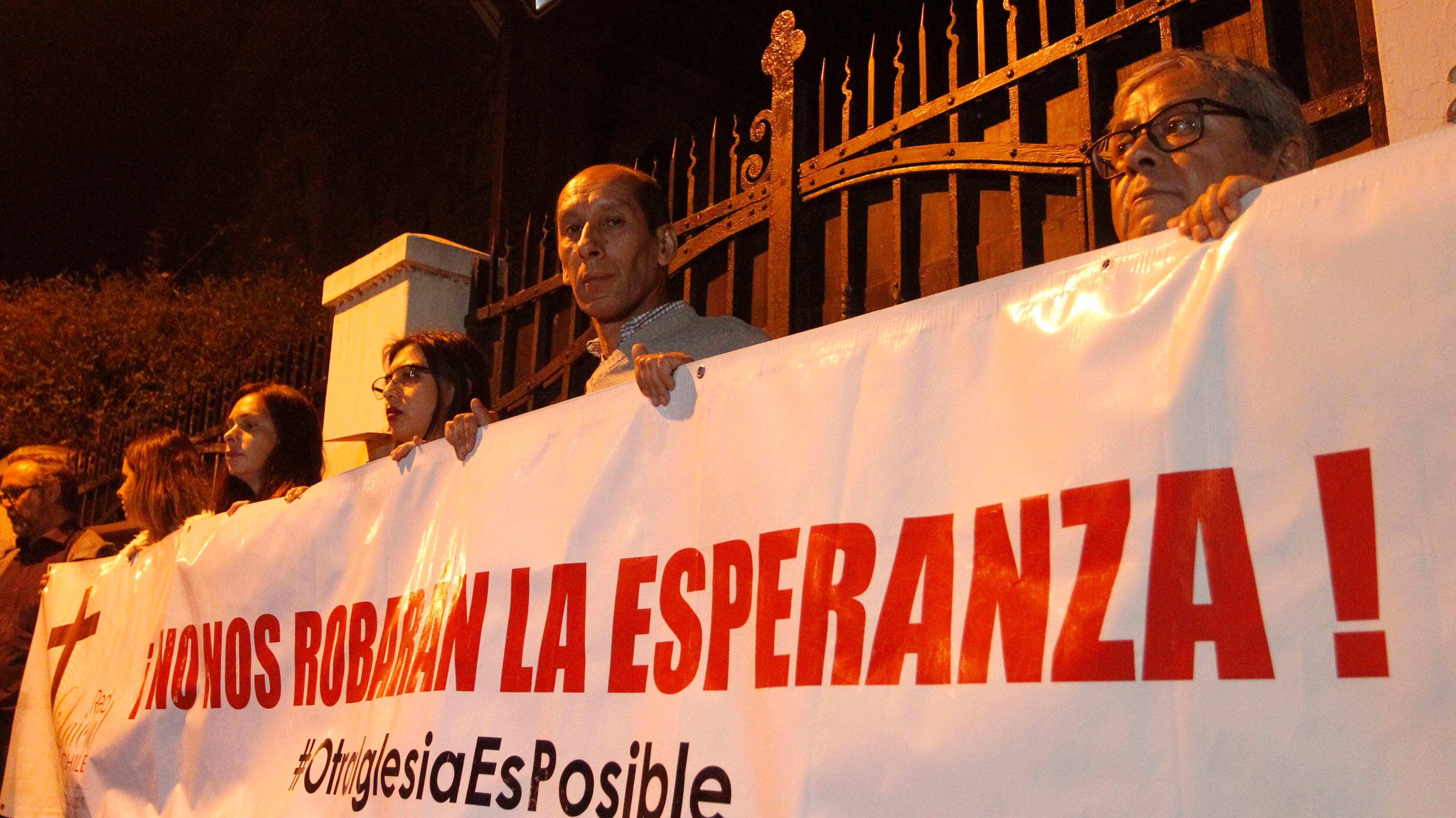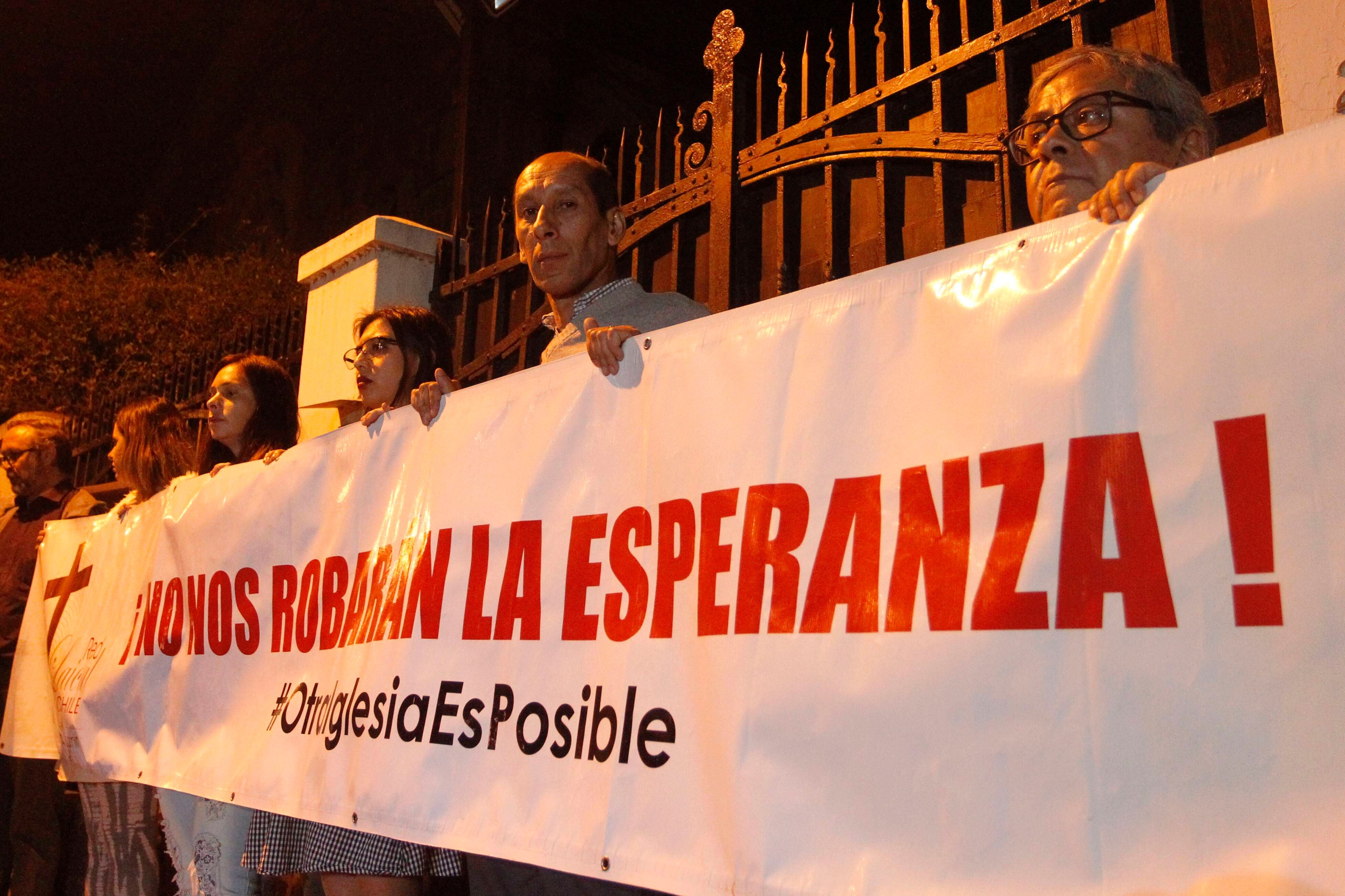 La Red de Sobrevivientes de Abuso Eclesiástico realizó esta noche una manifestación en contra del arzobispo de Santiago, el cardenal Ricardo Ezzati, en protesta por su decisión de no declarar ante el fiscal Emiliano Arias en el caso de los delitos sexuales que se le imputan al sacerdote Óscar Muñoz.