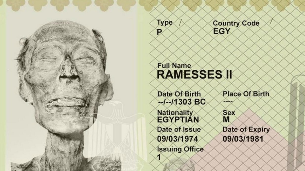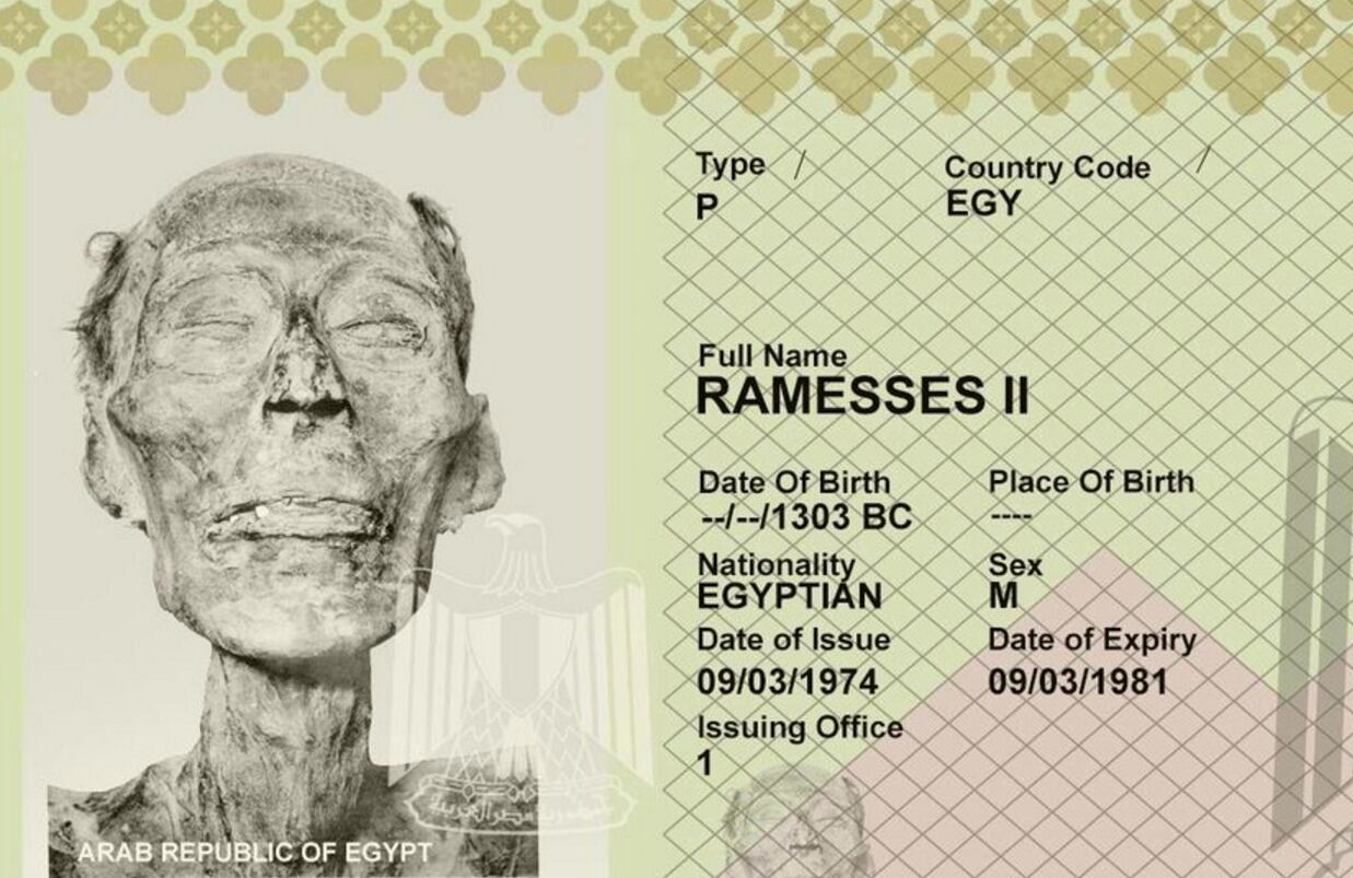 La historia de este fenómeno viral es muy curiosa. El reconocido arqueólogo David S. Anderson, publicó a través de su cuenta de Twitter una fotografía del supuesto pasaporte de Ramsés II; acompañado por la historia de cómo terminó expidiéndose ese documento para una momia.