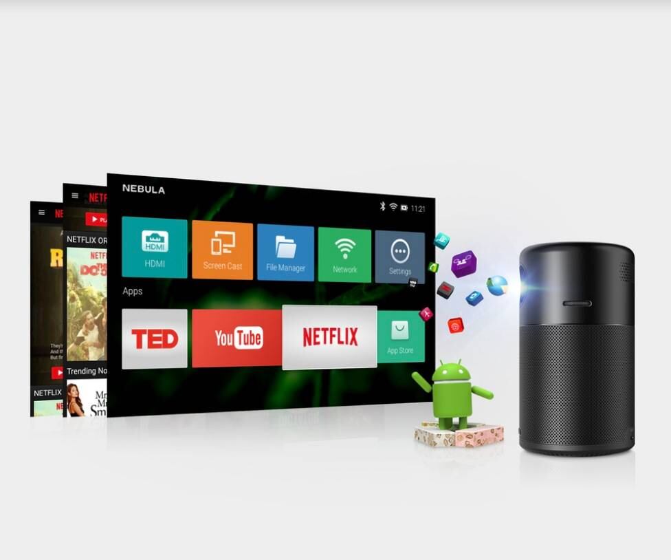 – Nebula Capsule encaja con mucha tecnología en una forma del tamaño de una lata de refresco. En primer lugar, la cápsula es capaz de proyectar una imagen de hasta 100 pulgadas de diámetro con un brillo de 100 lúmenes ANSI. La utilización de un sistema operativo Android 7.1 permite al consumidor acceder a aplicaciones como Netflix y YouTube. Además, la cápsula puede reproducir vídeo durante unas 4 horas, pero también puede utilizarse como altavoz Bluetooth durante 30 horas. Por último, todo el dispositivo pesa sólo 420 gramos, lo que lo convierte en una opción de entretenimiento doméstico extremadamente portátil.