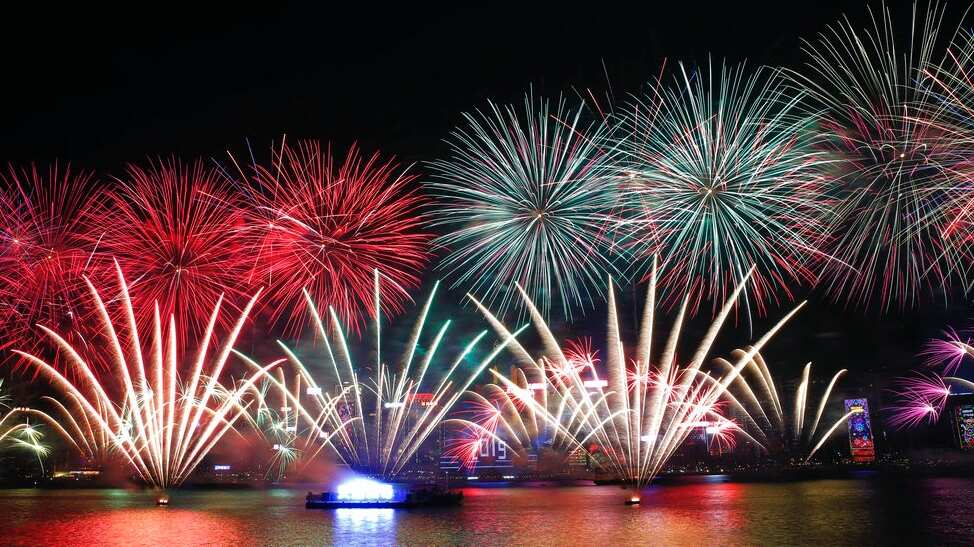 Los fuegos artificiales iluminaron los centros de las ciudades y puertos.
