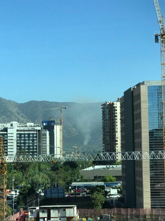 2 brigadas CONAF, 1 helicóptero y personal técnico al combate de incendio forestal Cerro Manquehue (Vitacura, región Metropolitana) 0,1 ha. por confirmar #ChileLoProtegemosTodos