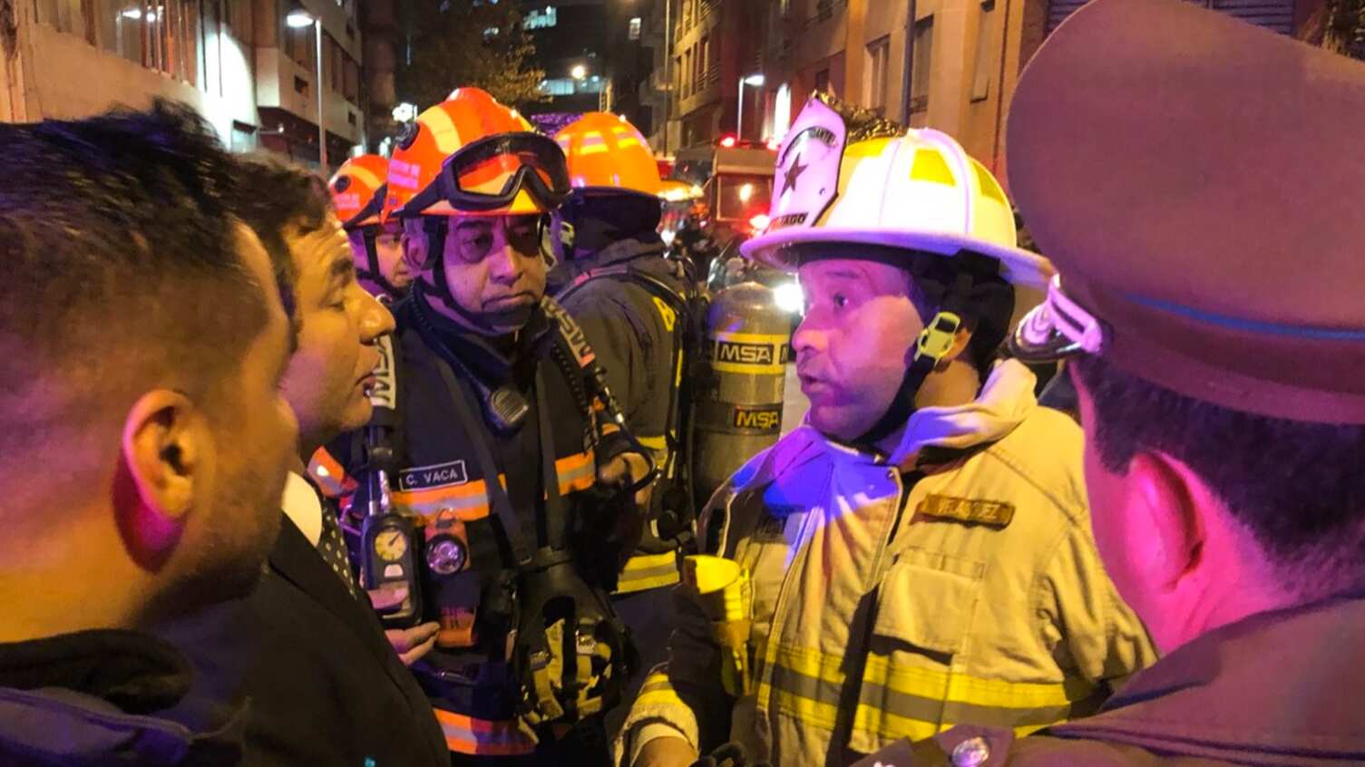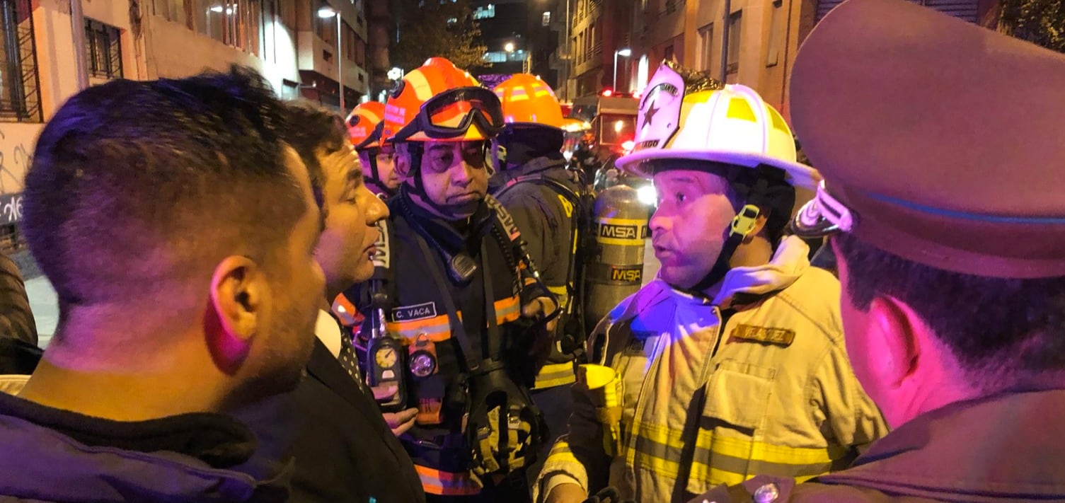 «Se trata de gran acumulación de monóxido de carbono en piso de edificio de departamentos, Mosqueto y Santo Domingo», informó el Cuerpo de Bomberos de Santiago, en medio de la consternación de los vecinos del inmueble.
