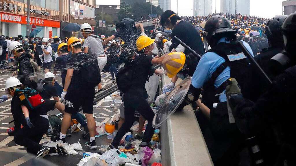 La policía de Hong Kong empleó el miércoles gases lacrimógenos, gas pimienta y mangueras de agua contra los manifestantes que habían rodeado el edificio del gobierno para oponerse a una polémica reforma del sistema de extradiciones, convertida en un símbolo de las preocupaciones sobre el creciente control chino y la erosión de los derechos civiles en el territorio.