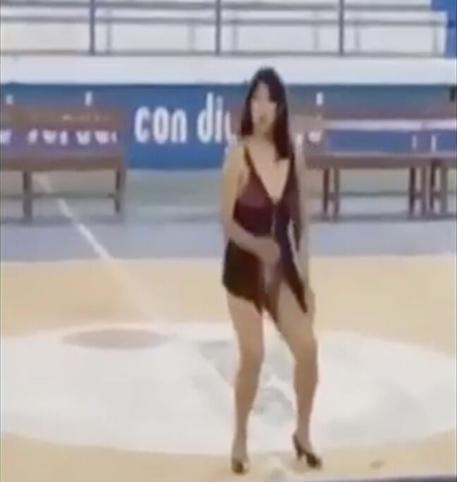 Hasta ahí, todo bien, pero un integrante de los artistas resultó ser una comediante, que no encontró nada mejor que ofrecer al público un espectáculo con tintes eróticos al ritmo de la canción «sin pijama», de Becky G.