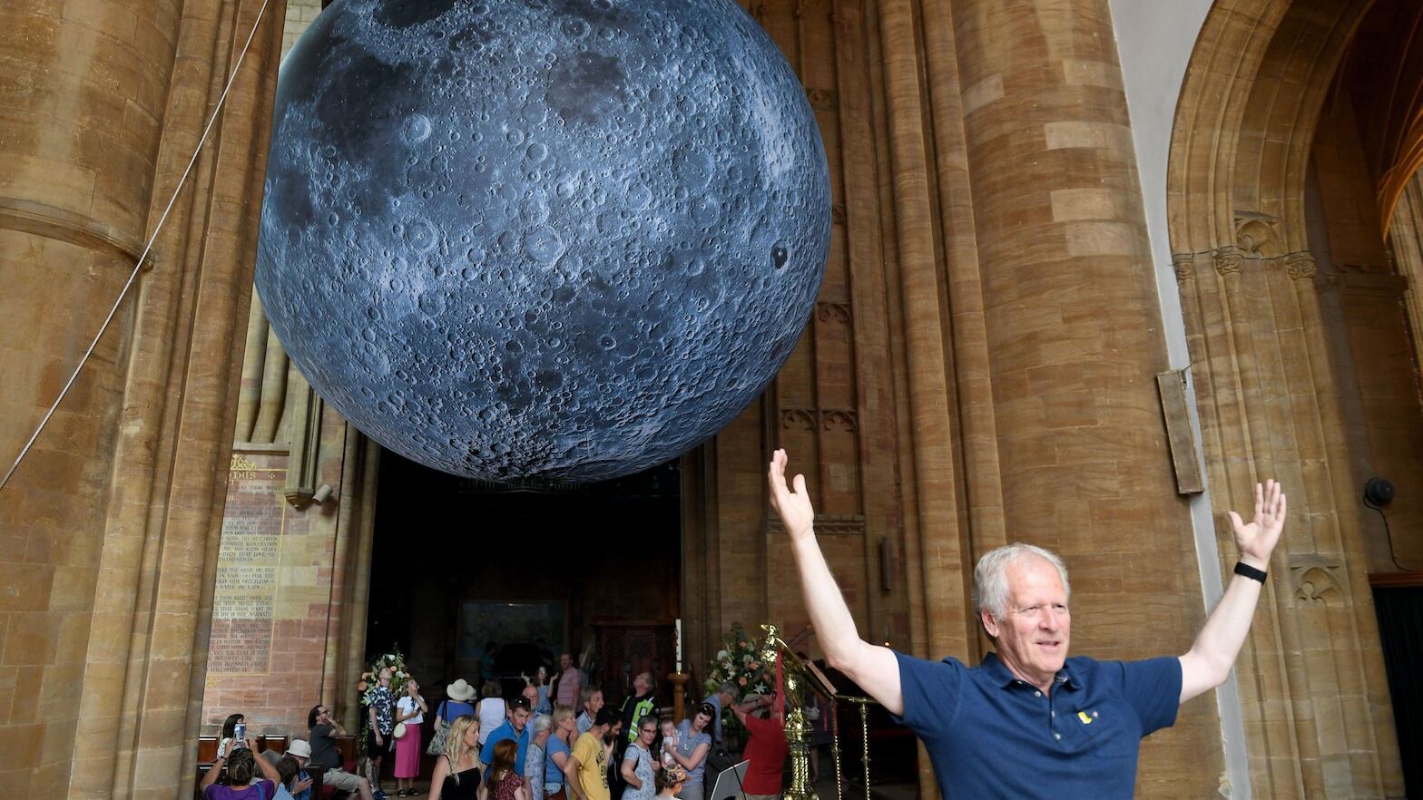 Una impresionante instalación del satélite natural de la Tierra fue exhibida recientemente en la Abadía de Sherborne, en el Reino Unido. La obra de arte denominada ‘Museo de la Luna’ fue creada por el artista británico Luke Jerram. La obra maestra permaneció tres días en la iglesia, durante los cuales cientos de personas vinieron a observarla y a tomar fotografías. Incluso se llevaron a cabo en el lugar una serie de pequeños conciertos con la Luna en la cima.