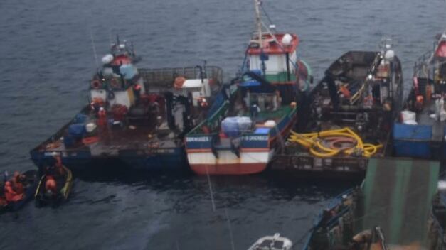 En tanto, el buque se mantiene rodeado por barreras contenedoras de bahía y absorbentes, con el propósito de evitar la contaminación en caso de que esta ocurra.