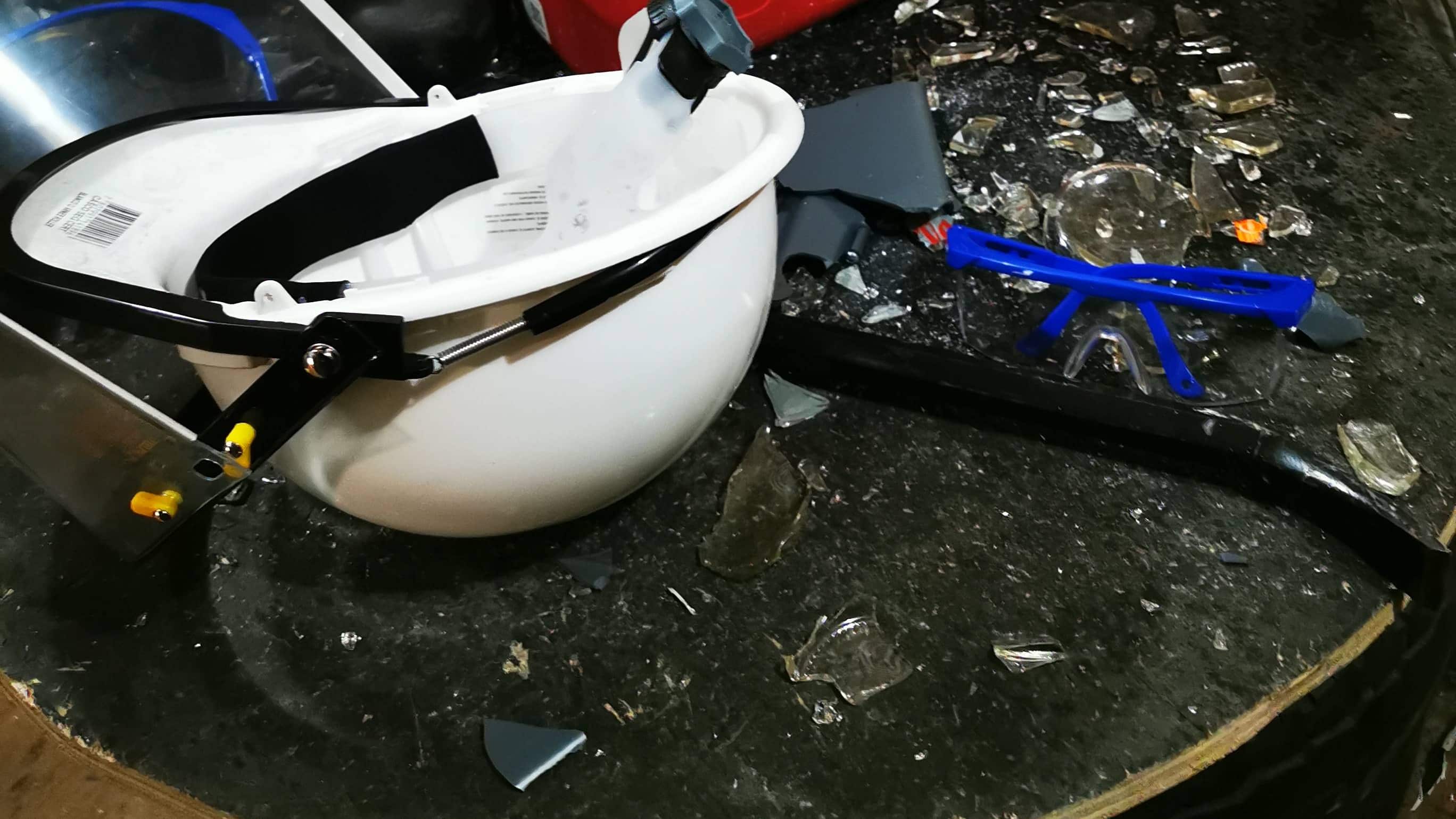 Luego de firmar el consentimiento el jugador debe equiparse con elementos de seguridad para los ojos y los pies. También se entrega un overol, guantes y más. Dispondrás de varias herramientas para destruir. ¿Qué puedes romper? Botellas, frascos y un electrónico a elección. Nosotros elegimos una cafetera, pero habían planchas, microondas y más.
