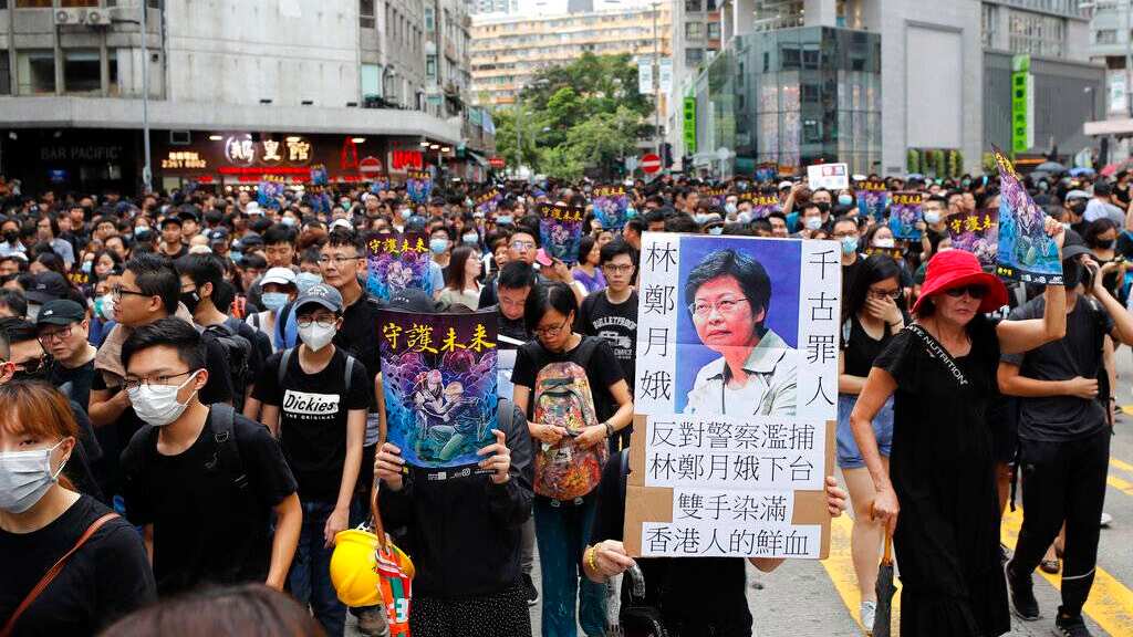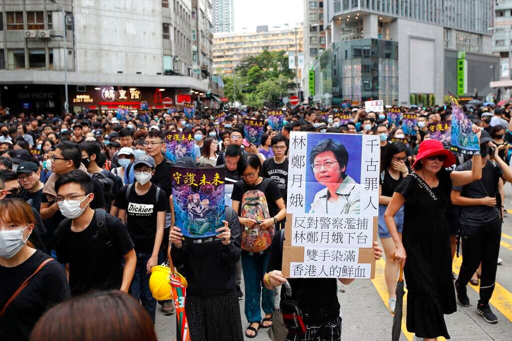 Decenas de miles de manifestantes vestidos en negro llenaron una calle principal en un usualmente bullicioso distrito comercial en donde propietarios de tiendas cerraron sus puertas en previsión de una protesta prolongada. También bloquearon un túnel y rodearon estaciones policiales en donde se suspendieron los servicios que no eran de emergencia.