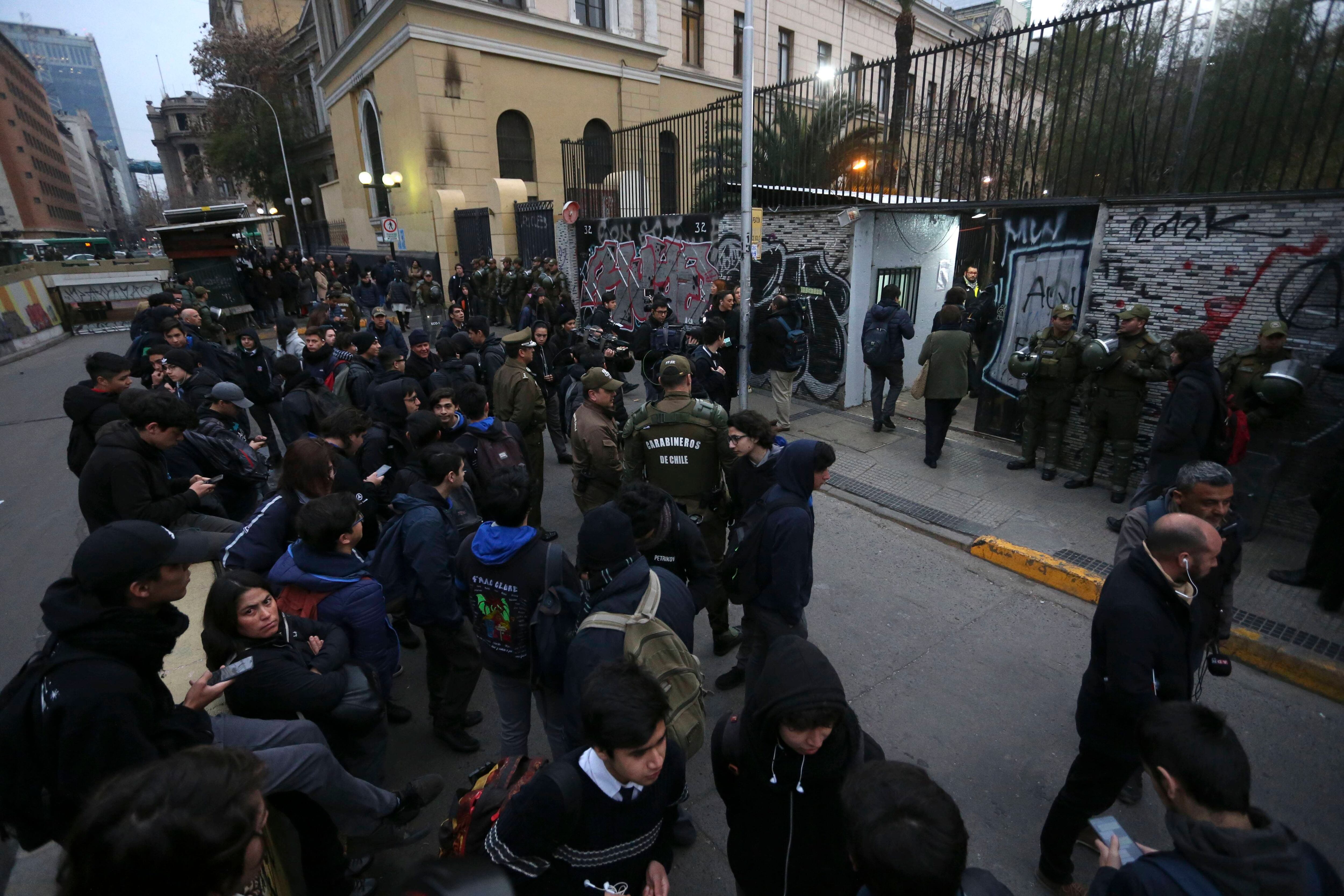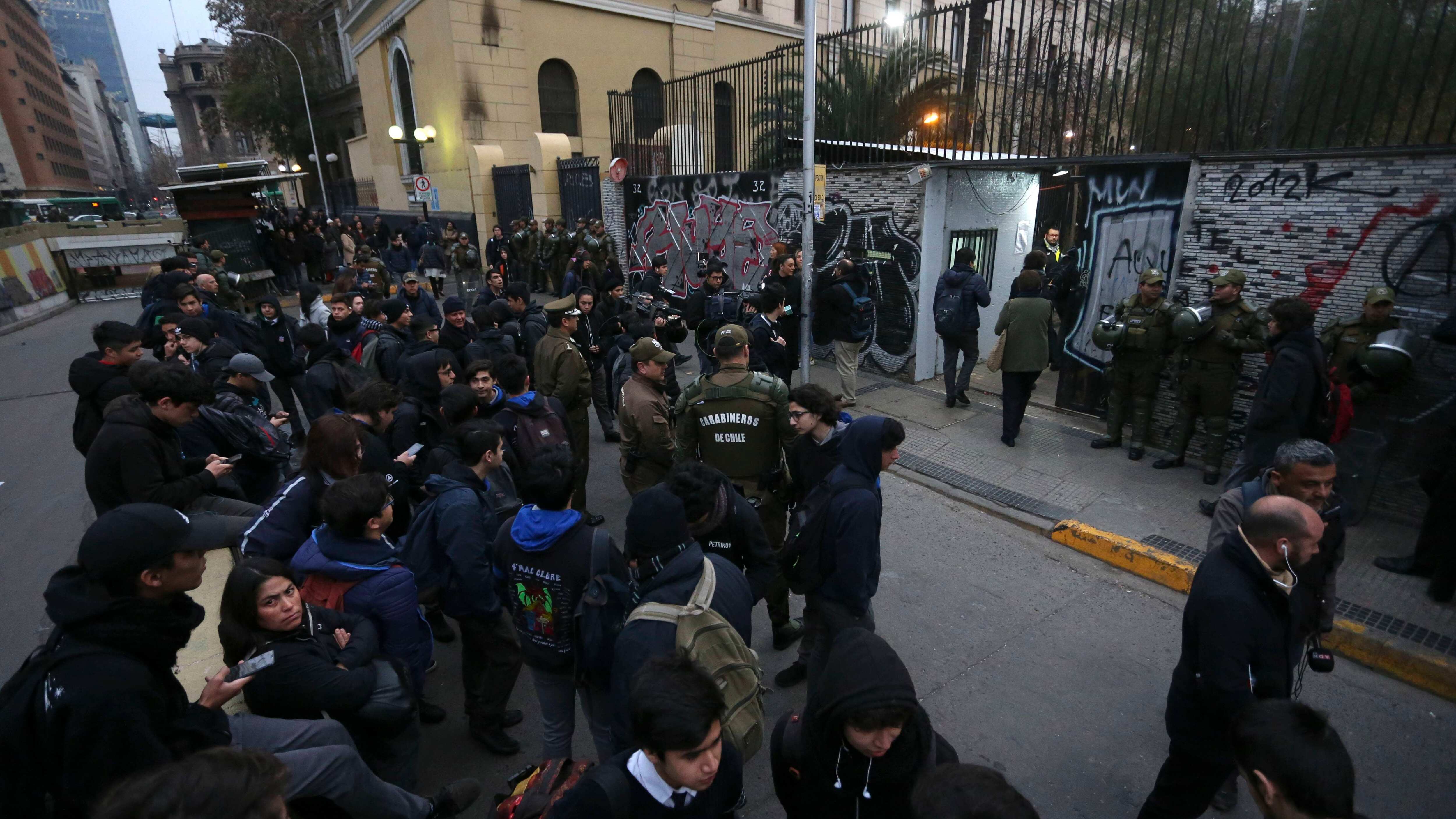 Esto luego que la semana pasada se vivieran nuevas jornadas de incidentes con acción de encapuchados, como lo ocurrido el viernes, cuando se registraron lanzamiento de bombas molotov a Carabineros tras el ingreso en masa de un grupo de estudiantes en rechazo a la exigencia de mostrar cédula de identidad para acceder al establecimiento.