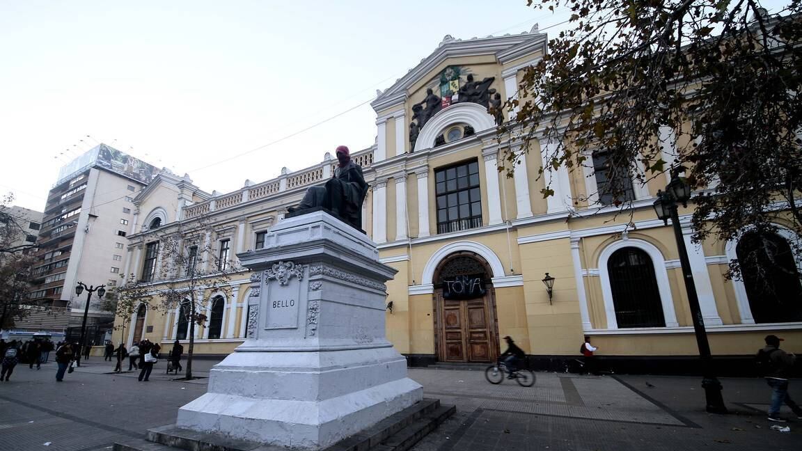 Alrededor de las 06.40 horas, el medio centenar de manifestantes ingresó por el acceso principal, por la Alameda, a la «Casa de Bello».