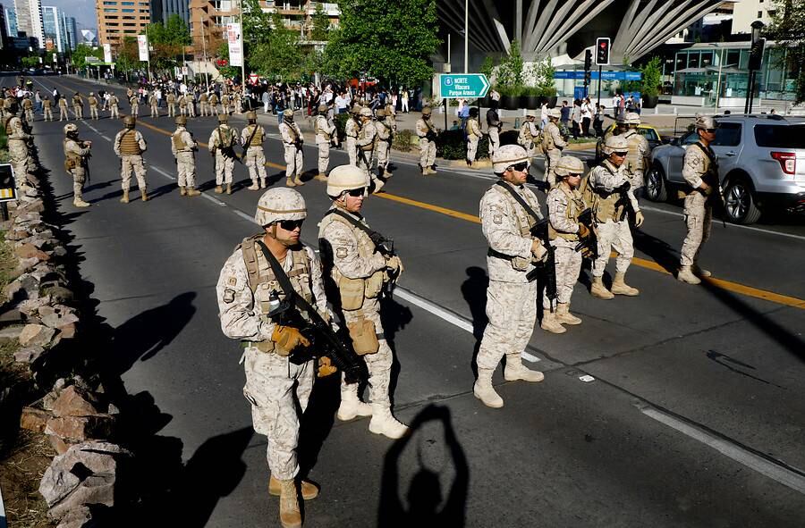 Una escena curiosa, que incluso rayó en lo cómico, se vivió en el sector de la Escuela Militar. Mientras un grupo manifestantes marchaba pacíficamente por Apoquindo, mientras otro grupo golpeaba cacerolas en las veredas, una inusual cantidad de efectivos militares copó la avenida Apoquindo.