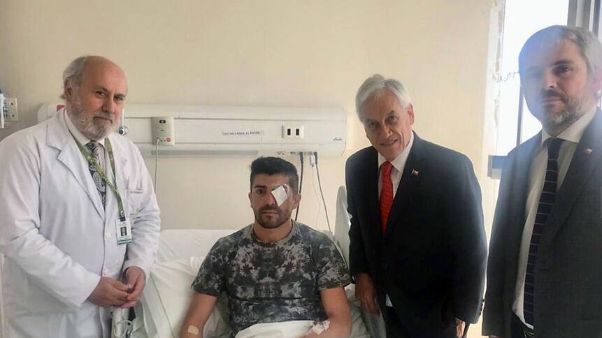 El Presidente Sebastián Piñera visitó este miércoles a un paramédico que sufrió una herida ocular durante las manifestaciones sociales.