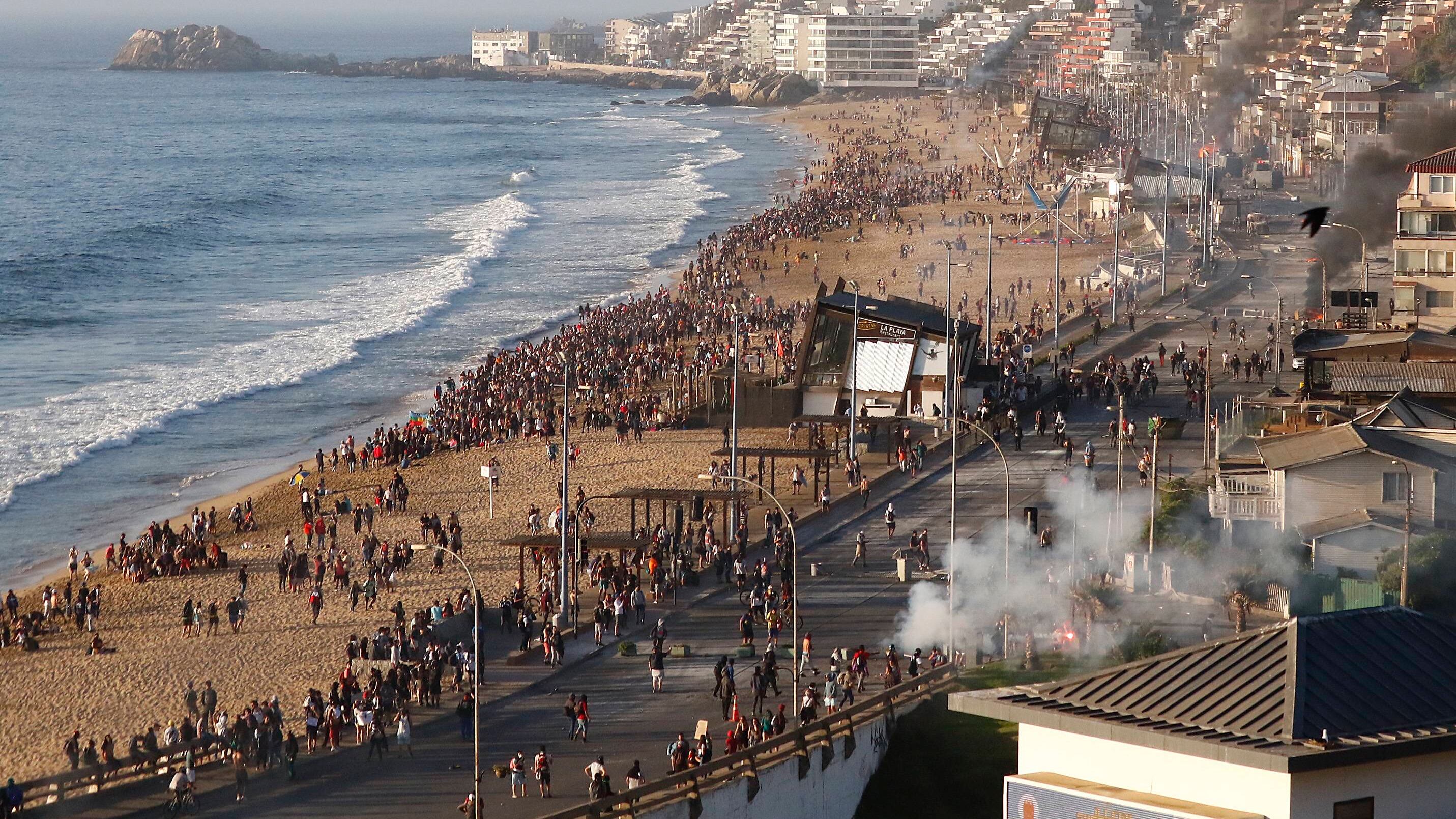 Este domingo se desarrolló una nueva protesta tras el estallido social en Chile desde el pasado 18 de octubre. En esta oportunidad los manifestantes se reunieron en las playas de Reñaca en la comuna de Viña del Mar. La concentración pacífica se convocó a las 12:00 horas a través de redes sociales. Hasta ahí todo bien. Sin embargo cerca de las 16:00 horas se registraron incidentes luego de que uniformados intentaran dispersar a los manifestantes que se encontraban en las cercanías del balneario.