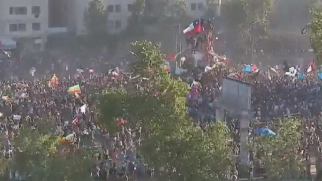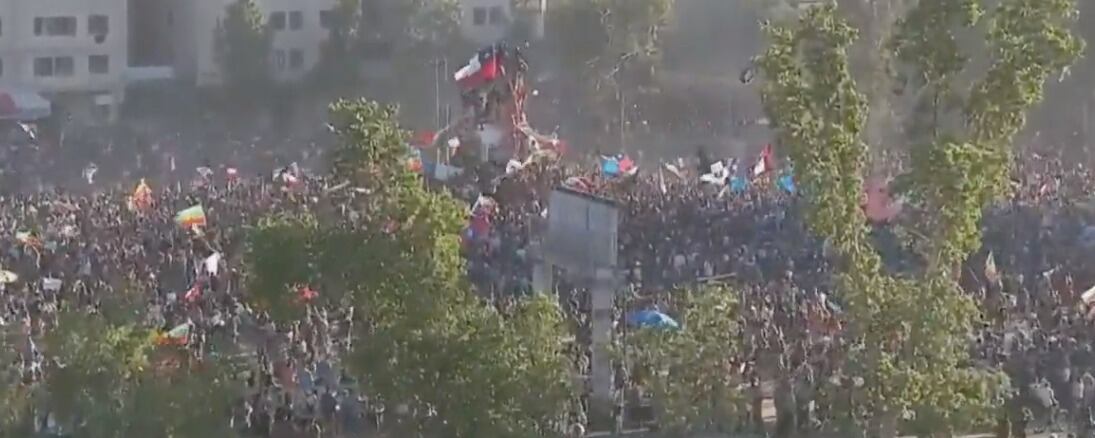 Con idas y vueltas, tras escaramuzas entre manifestantes y Carabineros, nuevamente la ciudadanía se tomó la Plaza Baquedano, rebautizada como Plaza de La Dignidad, tal y como ha sucedido en las últimas cuatro semanas.
