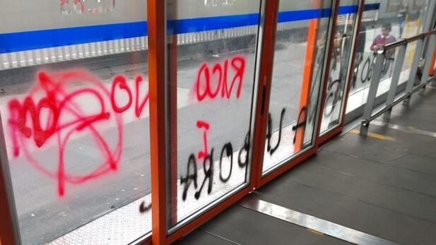El secretario de Movilidad, Juan Pablo Bocarejo, mostró en sus cuentas los saldos de los actos vandálicos. Los vidrios en las estaciones fueron rotos y las puertas pintarrajeadas en las cuatro estaciones.