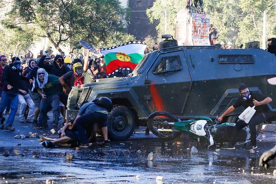 En el Centro de Justicia se manifiestan ciudadanos exigiendo Justicia para Óscar y cárcel para Piñera. En el interior está siendo formalizado el Carabinero conductor del zorrillo por delito de lesiones graves pic.twitter.com/GKb83SIGBq