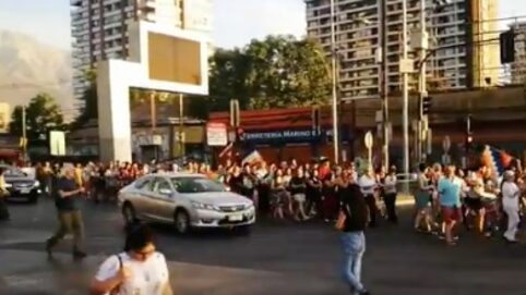 Decenas de personas se manifestaron cerca de las 20 horas en las calles aledañas de la Plaza Egaña con cacerolas. Usando solo un carril de la avenida se manifestaban con sus cantos.