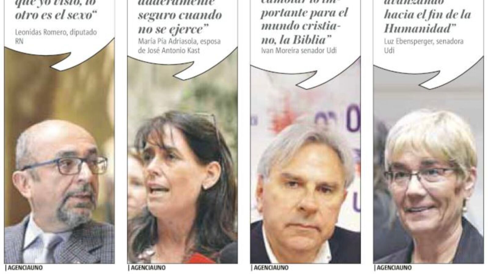 En la discusión sobre el matrimonio igualitario el senador UDI, Iván Moreira incluso sacó una copia de la biblia. «No es parte de un hecho mediático, pero si tienen mayoría pueden cambiar esto, la Constitución, pero nunca jamás van a cambiar lo que es importante para el mundo cristiano, la biblia», señaló mostrando ambos libros.