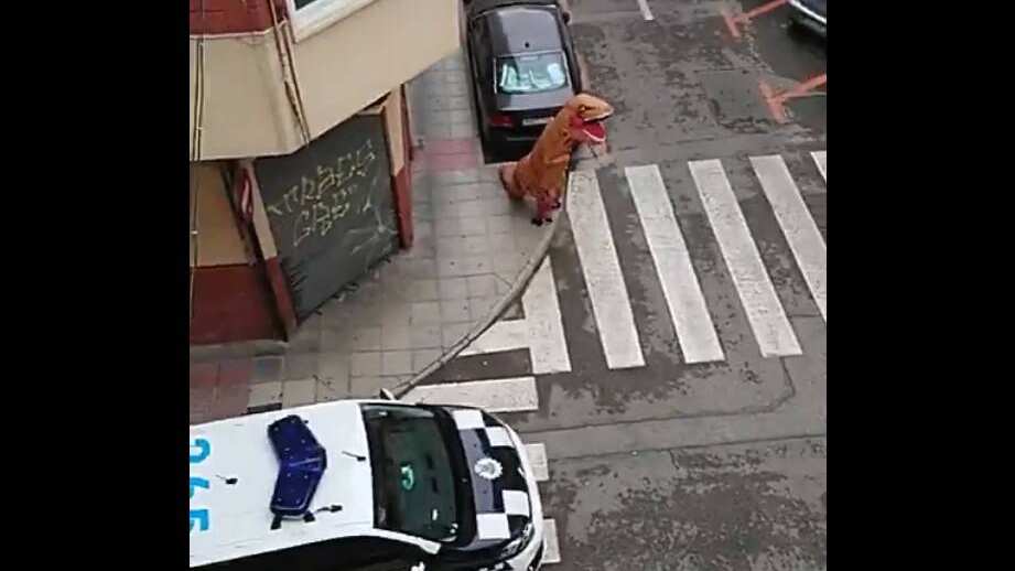 Se le ha pedido a la gente que sólo salga a la calle si es estrictamente necesario, por ello la policía de Murcia se llevó toda una sorpresa cuando vio un Tiranosaurio rex caminando en solitario.