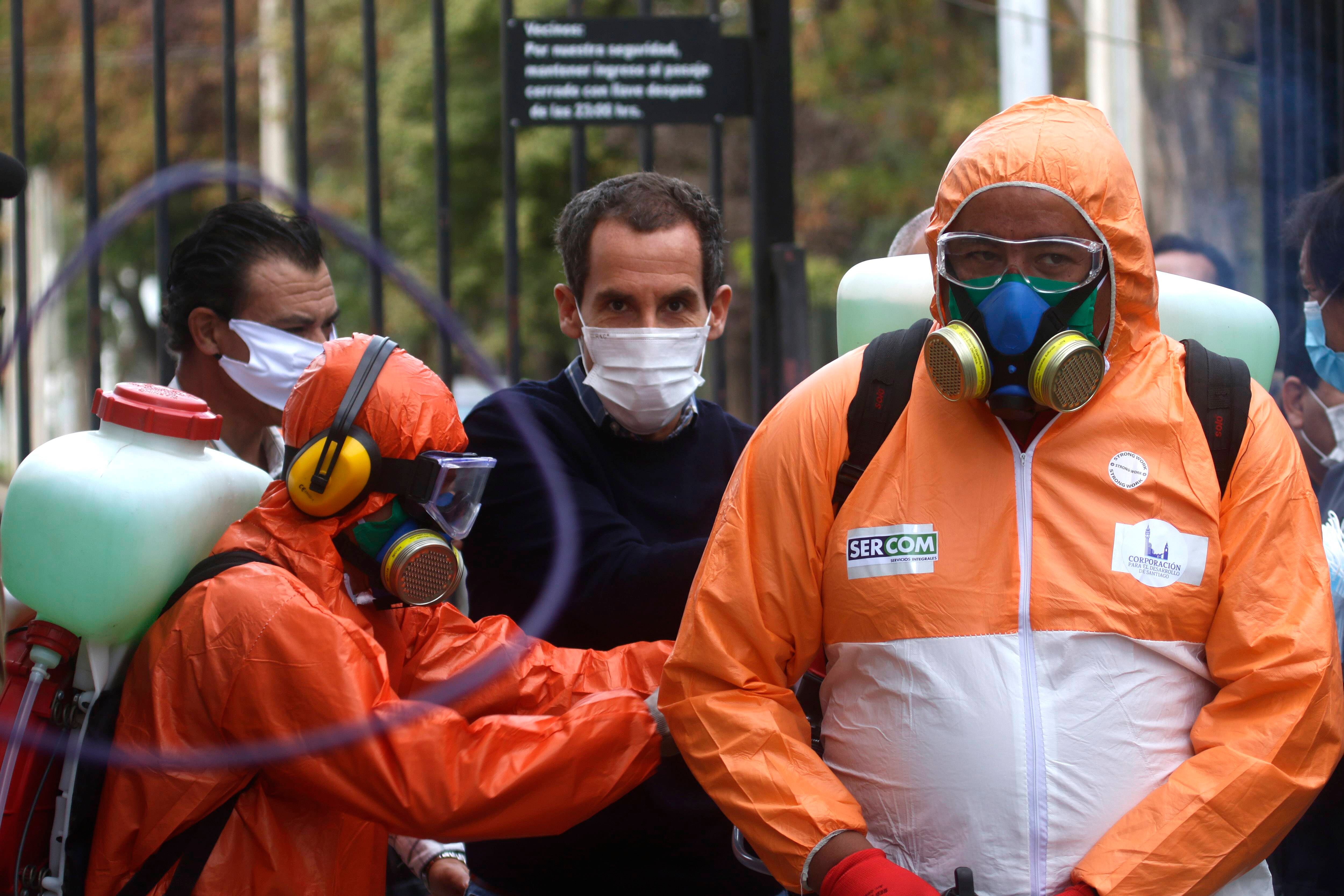 Durante esta mañana, la Municipalidad de Santiago continuó con su programa de sanitización de cités en la comuna, que busca ayudar a aplanar la curva de contagiados de Covid-19 en la Región Metropolitana y el país.