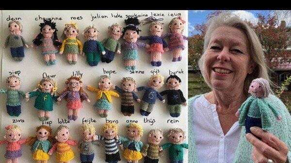 La maestra Ingeborg Van der Duin echaba tanto de menos a sus pequeños 23 alumnos de enseñanza primaria de una escuela de la ciudad de Haarlem, que en el encierro de su casa decidió recordarlos de una forma muy creativa: tejió 23 pequeños muñeco de lana que representan a cada uno de sus pupilos, y cerró la serie con una muñeca que la emula a ella.