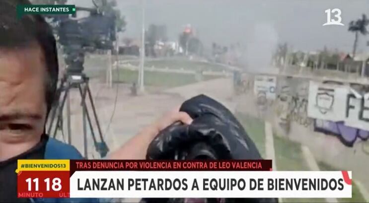 Un móvil del matinal Bienvenidos fue atacado con unos 200 cartuchos de petardos en las afueras del estadio Monumental mientras cubría el caso de violencia de género de Leonardo Valencia.