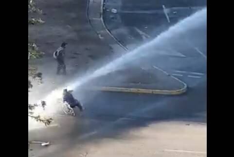Esto luego que el hecho fuera captado por un video que se viralizó en redes sociales y en el cual se ve a un hombre en silla de ruedas, el cual es derribado por un chorro de un carro lanza aguas.
