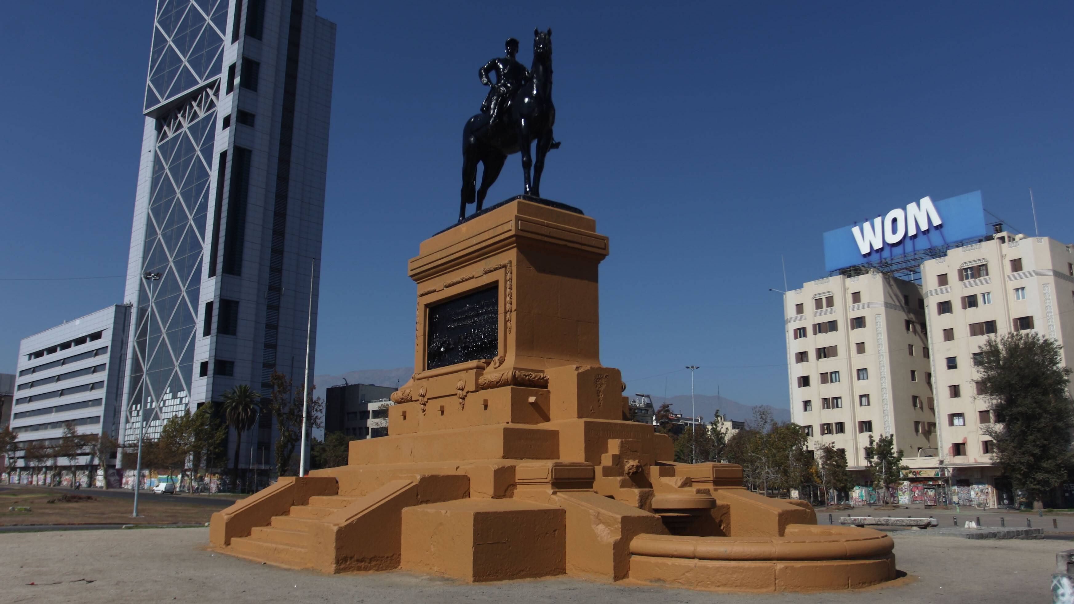 Un grupo de manifestantes pintó el viernes todo el monumento de color rojo, lo cual provocó el rechazo de las autoridades, especialmente del Ejército y el alcalde de Santiago, que condenaron enérgicamente el hecho.
