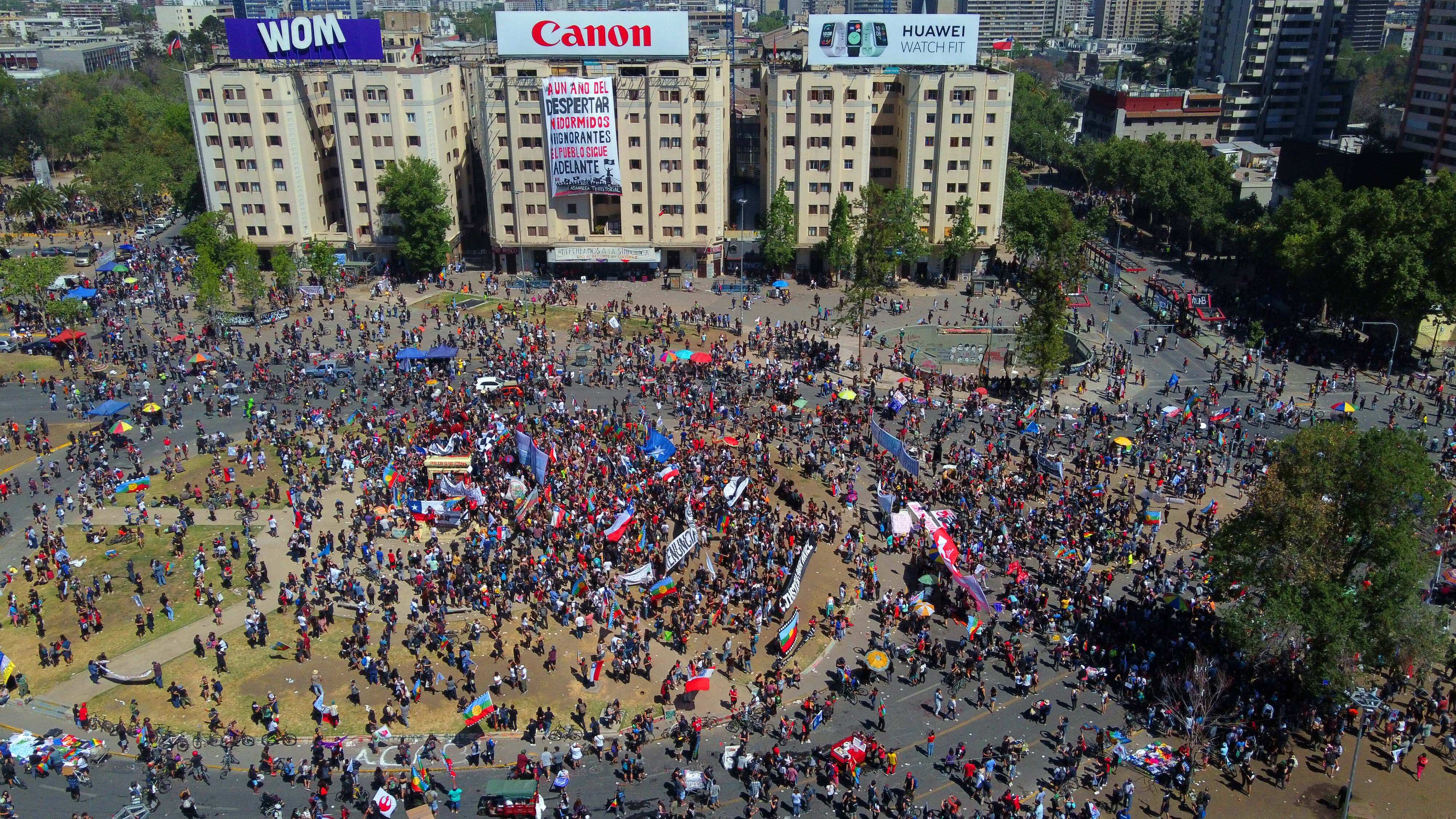 Según información oficial entregada por Carabineros, en total llegaron 25.000 personas. Esto, en el marco del primer aniversario del denominado estallido social.