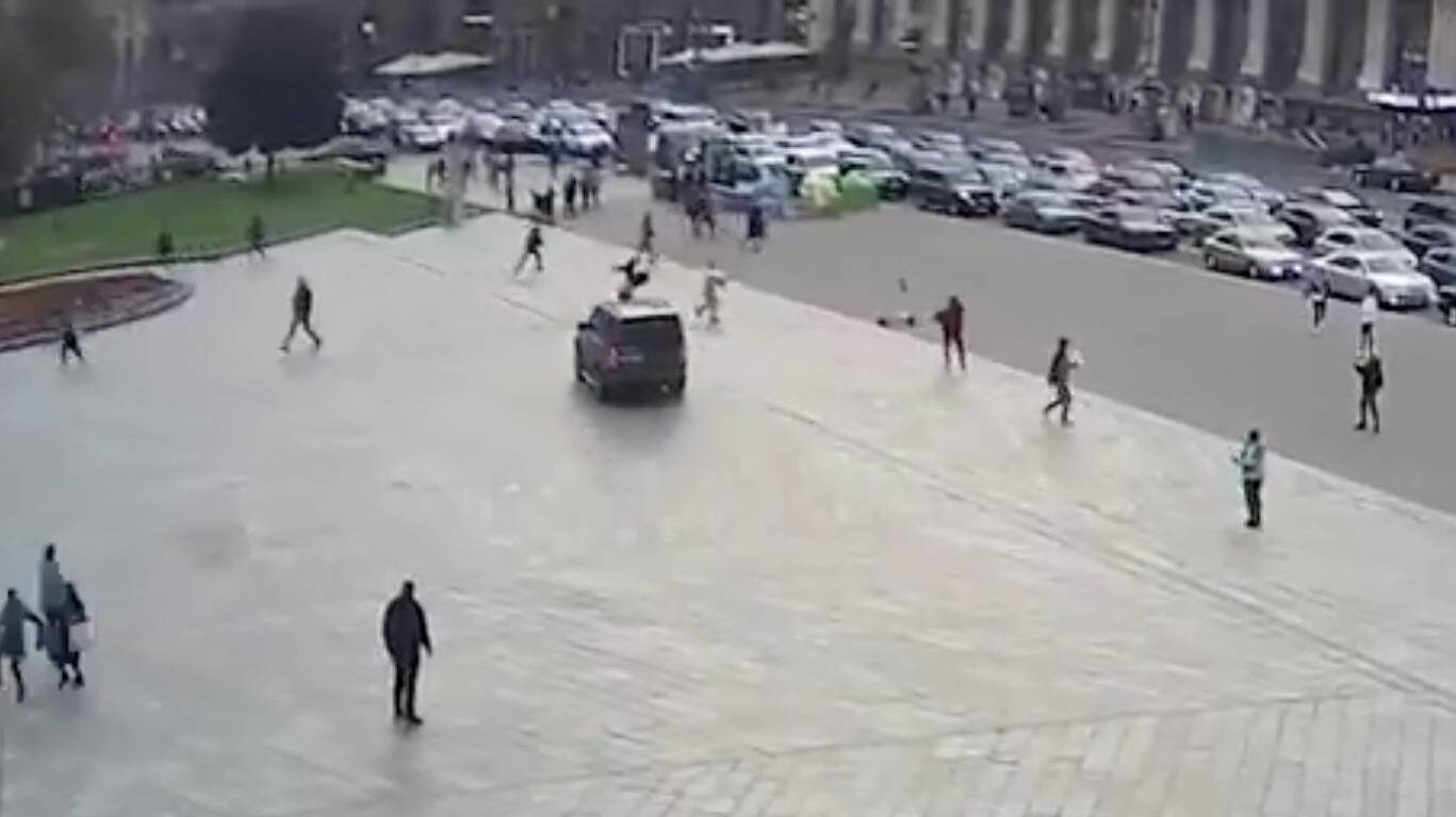 La cadena rusa RT, en su sitio web, difundió las imágenes captadas por las cámaras de vigilancia, las que dejan en evidencia la irrupción del todoterreno Land Rover en la plaza.