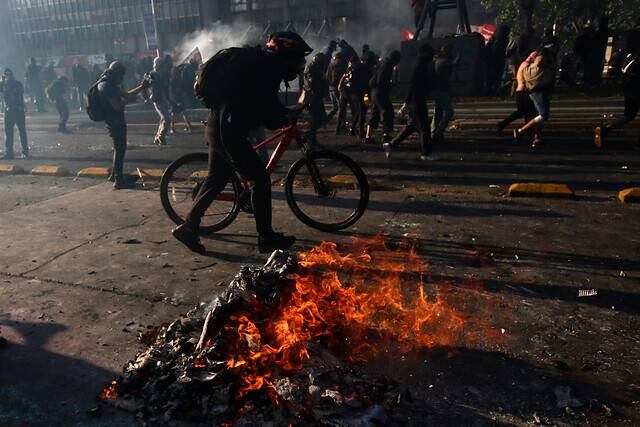 Violentos incidentes, intentos de saqueos a un banco y otros locales comerciales del centro de la capital y diversos enfrentamientos con Carabineros fue el balance de una nueva jornada de manifestaciones contra el Gobierno en lugares como Plaza Baquedano y las inmediaciones de la estación Universidad de Chile del Metro.