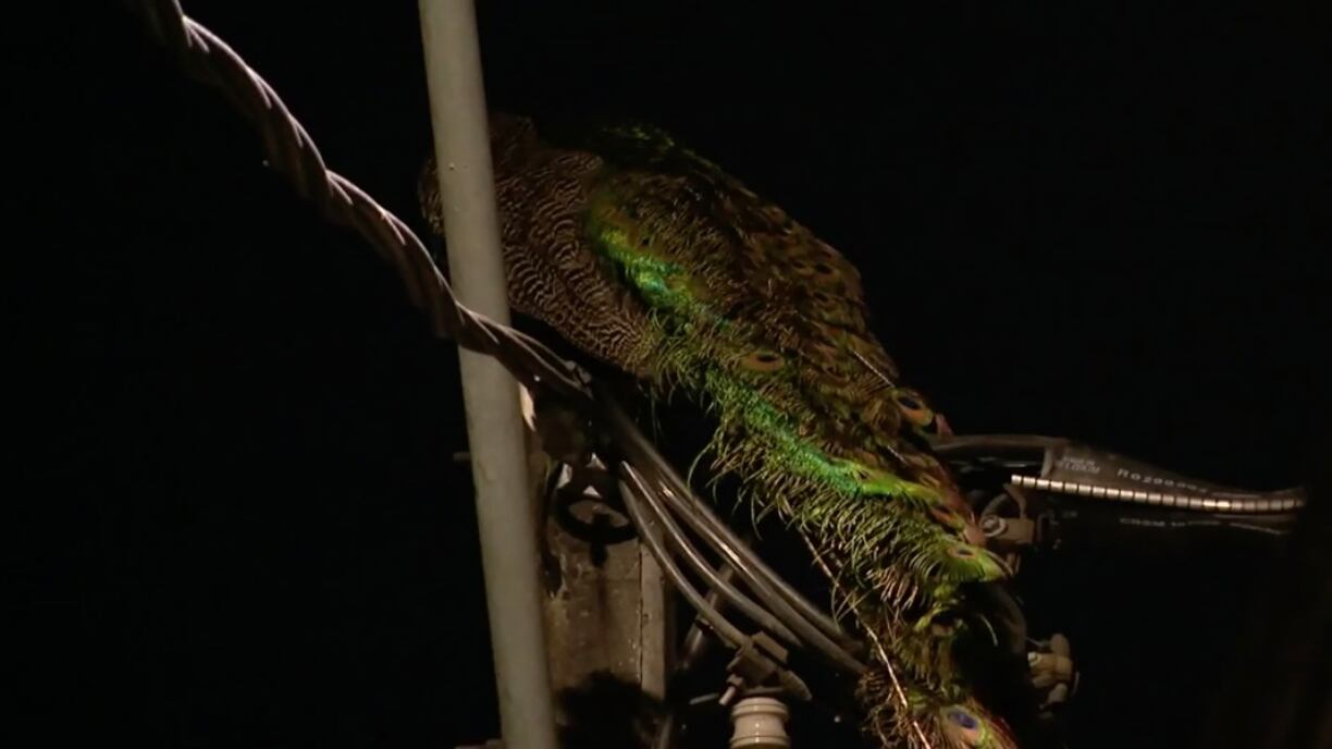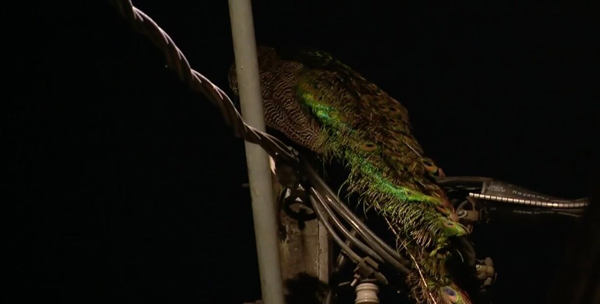 Un pavo real en los cables del alumbrado público. Eso es lo que avistaron vecinos de Recoleta, durante la madrugada de este lunes.