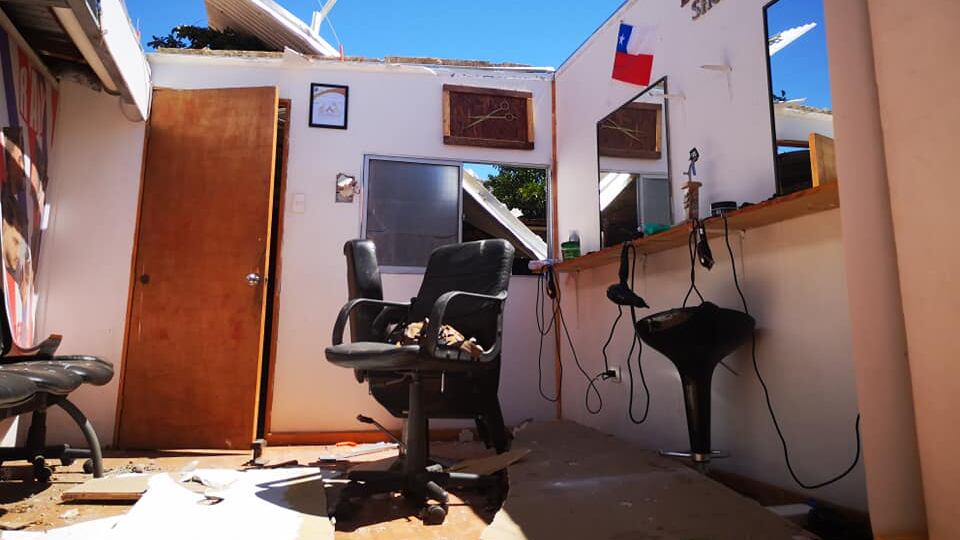 #Combarbalá Insólita situación de remolino destruyó peluquería de ciudadano colombiano durante la tarde de hoy. Personal municipal de emergencias y de Tecnet ayudando en situación que dejó sin techo a viviendas y sin electricidad al sector del casco antiguo pic.twitter.com/a1jQIOdygx