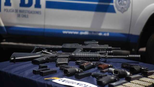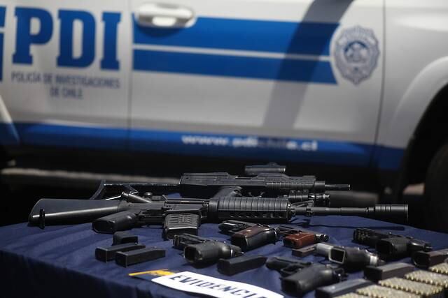 Entre ellas, se encontraba una una pistola calibre 9 mm marca Glock “la cual tiene la particularidad de que es adaptada y cuenta con un tambor de 50 tiros. Además de una escopeta calibre 16, una pistola a fogueo adaptada para el disparo y un rifle de aire comprimido”, precisó el mayor Mario Ulloa, Comisario de la 1ª Comisaría de Viña del Mar.