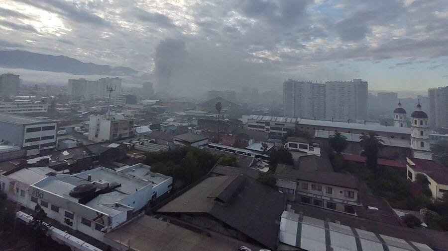 Según los primeros antecedentes, el incendio afecta a la zona ubicada en la intersección de calles Amazonas con Santa Rosa.