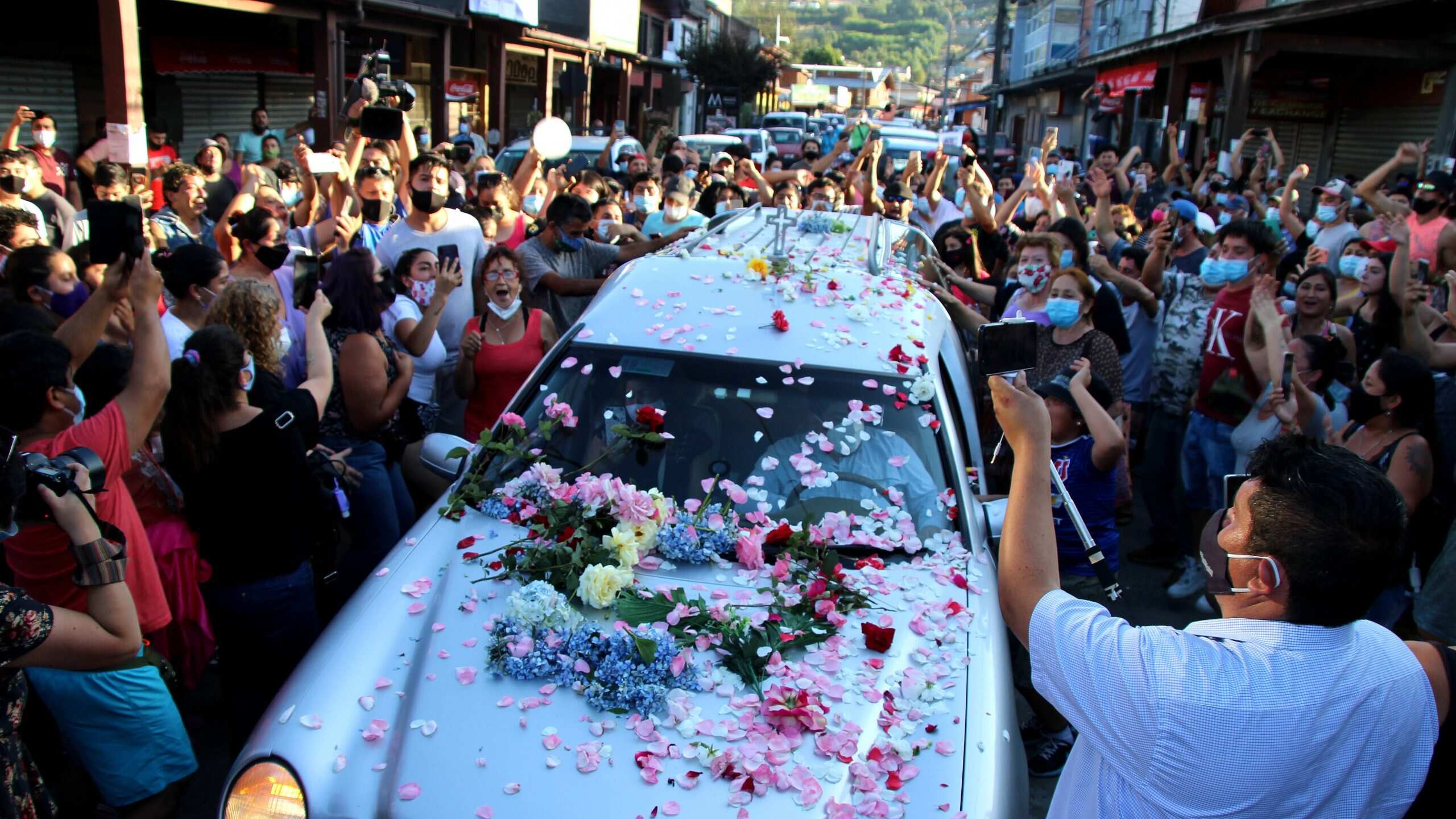 Globos de colores, flores y cantos. Cientos de personas salieron a las calles de Panguipulli, en la Región de Los Ríos. Así, despidieron al cuerpo del joven malabarista que durante la tarde de este viernes falleció tras ser baleado por un funcionario de Carabineros. El joven recibió disparos luego de negarse a un control de identidad. Los gritos en su último adiós pedían una cosa: «justicia».