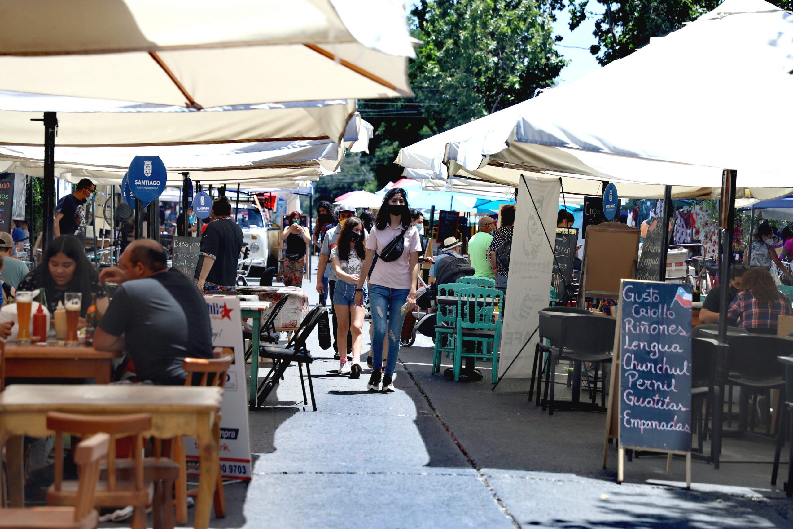 Los barrios gastronómicos de la comuna de Santiago Lastarria, Centro, Yungay y Franklin, en cada una de estas zonas se determinó realizar cortes de calle, permitiendo un mejor flujo para los peatones y entregando más espacio para los comensales, para que puedan asistir a los restaurantes de manera segura.
