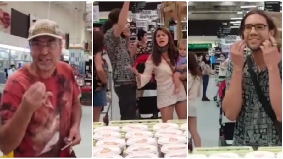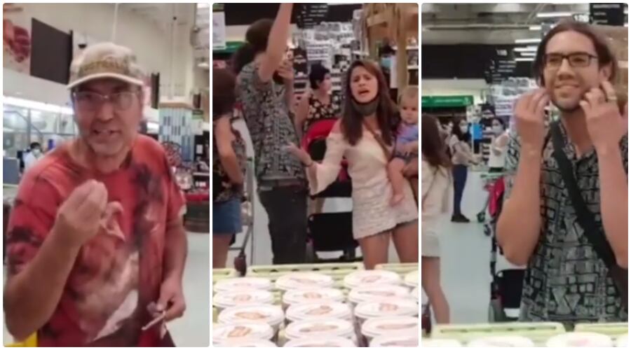Una familia completa fue duramente increpada, y luego multada, al ser sorprendida sin mascarillas al interior del supermercado Jumbo de Talca, en la región del Maule.