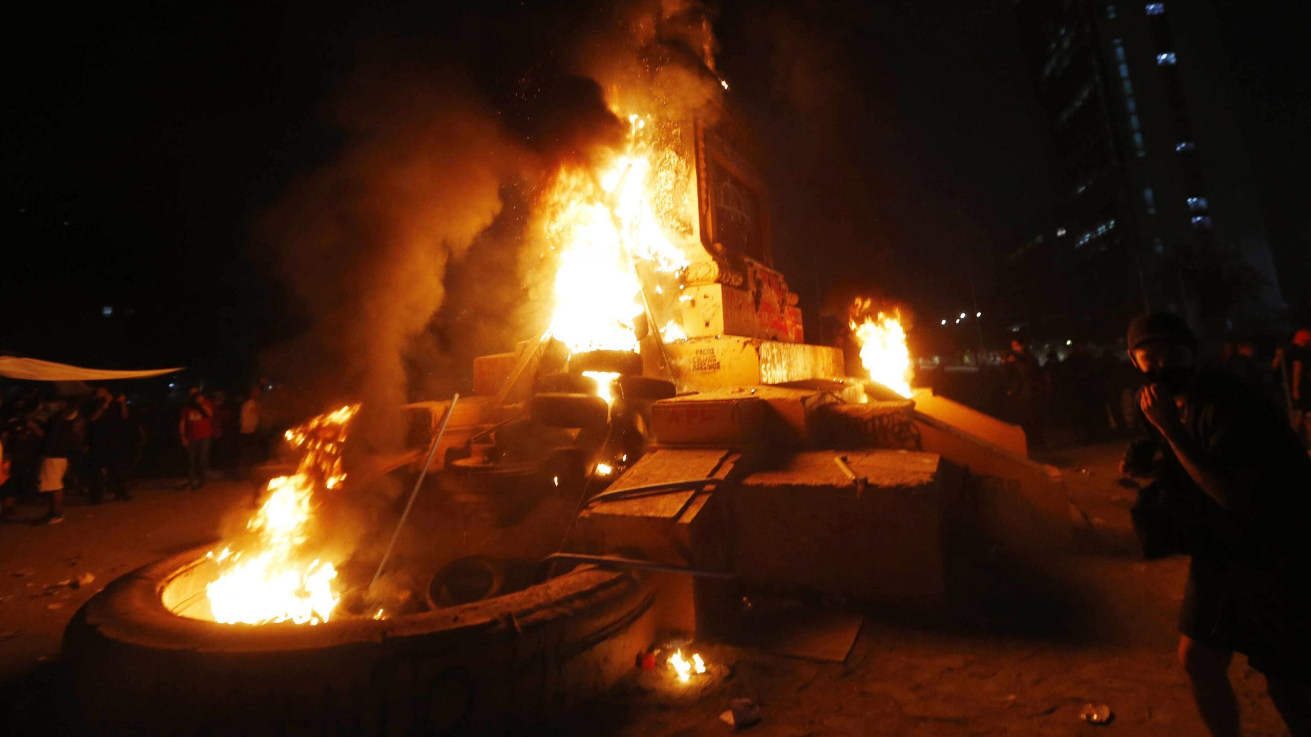 El grave incidente ocurrió cuando un grupo de manifestantes lanzó un neumático encendido a los pies del monumento ecuestre, lo que sumado a elementos combustibles terminó por afectar la infraestructura de la estatua.