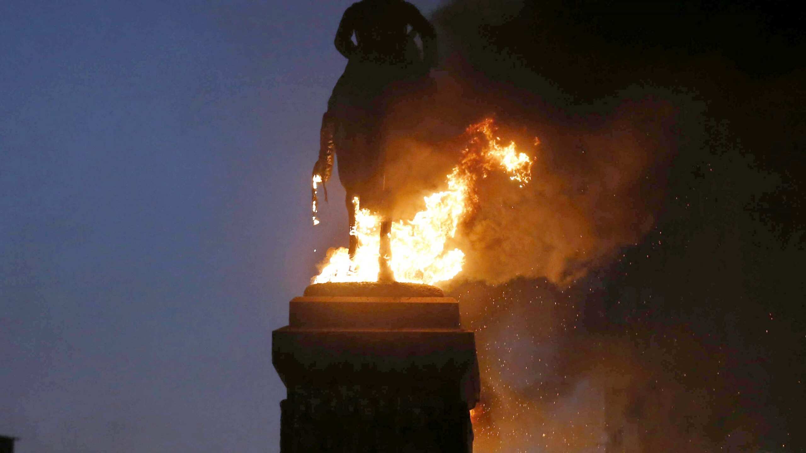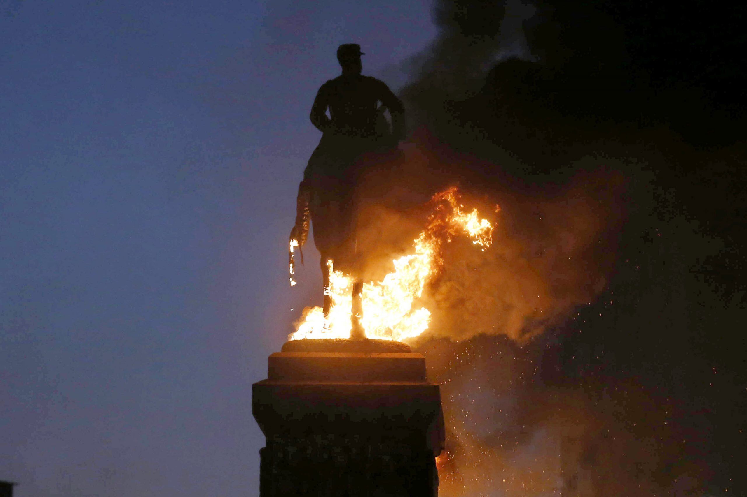 Bombas incendiarias contra la estatua